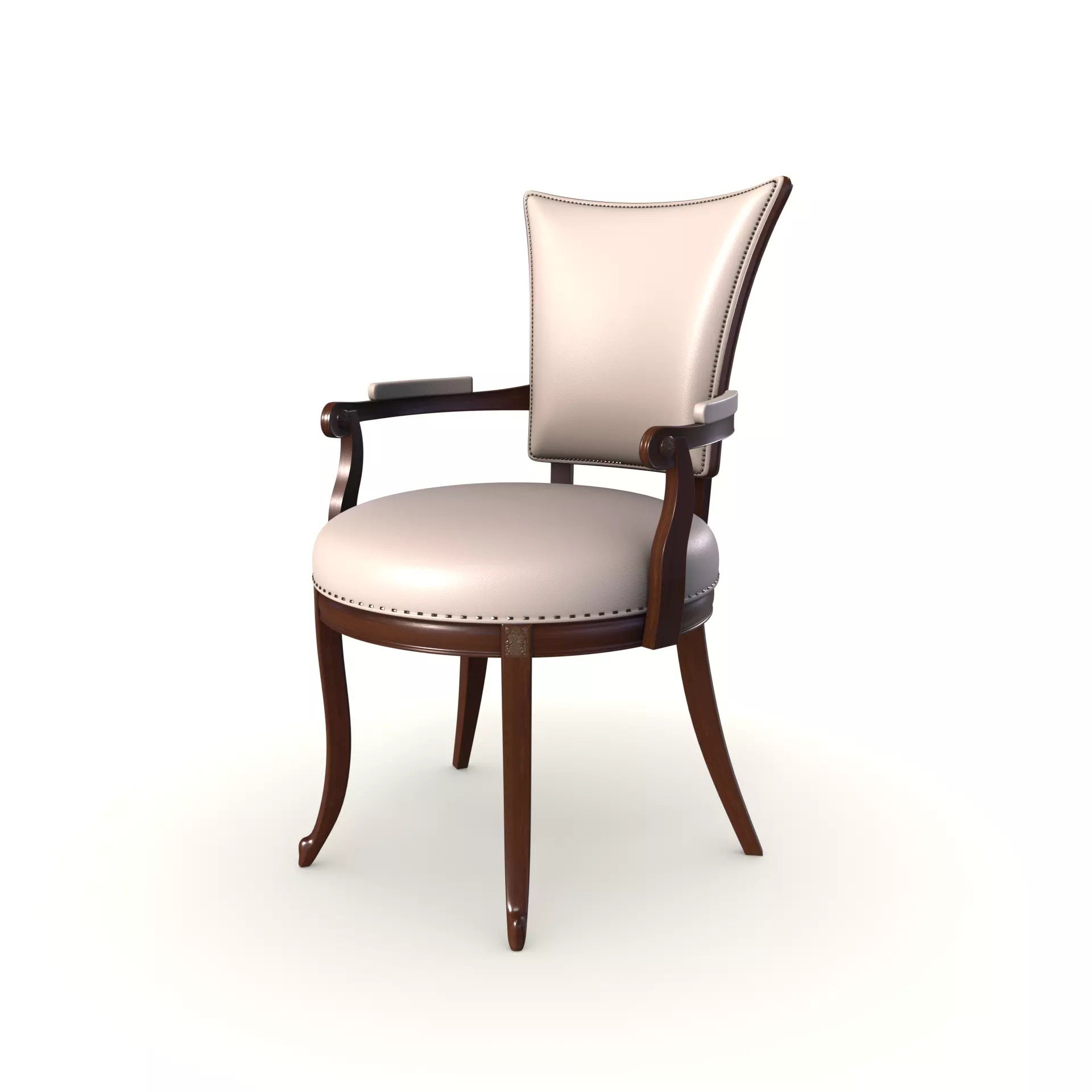This classic dining chair exudes timeless elegance and sophistication. The chair features a solid wood frame with a rich mahogany finish, radiating a sense of luxury. The seat and backrest are upholstered in a smooth cream-colored fabric, adding a touch of refinement. The chair's curved backrest and carved details exemplify classic design elements. With its traditional aesthetics and graceful silhouette, this chair creates a regal ambiance in formal dining rooms or elegant settings.