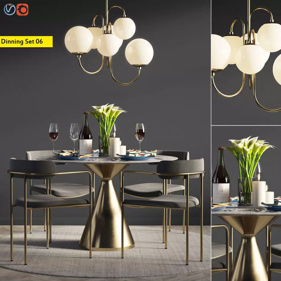 Dinning Set 06The file contains: - -Lenox Dining Chair Westelm-Silhouette Pedestal Dining Table West Elm-Pelle Chandelier Gooseneck West Elm-and-Loomed Shine Rug Round westelm-Table Accessories Materials: Brass,gold,polished,white,black,Wood,Velvet,birch,oak,walnutPlace of use -livingroom / dining room / lounge / kitchen / Bedroom / bar, cafe, restaurant / hotel and hotel /. Archive Contains: -3d max2014Vray 3.20.02Map.objLink :- https://westelm.comThanks Tags: - westelm, Lenox, Silhoutte, pedestal, Dinning Table, pelle, Gooseneck, Chandelier, Lucent, Rug, Accessories, Dinning Table, Spinning , Hanging Light, Lampshade, Tableware, Walnut, Antique, Brass, Velvet, Dinning Chair, Essentialhome, Collins, mid-century, walnut, Pendant, cocktail, cup, plate, book, magazine, calla, flower, decorative, modern, round, laying, Candle, Candle holder, flame, Plate, Spoon,napkin, wine, glass, red wine