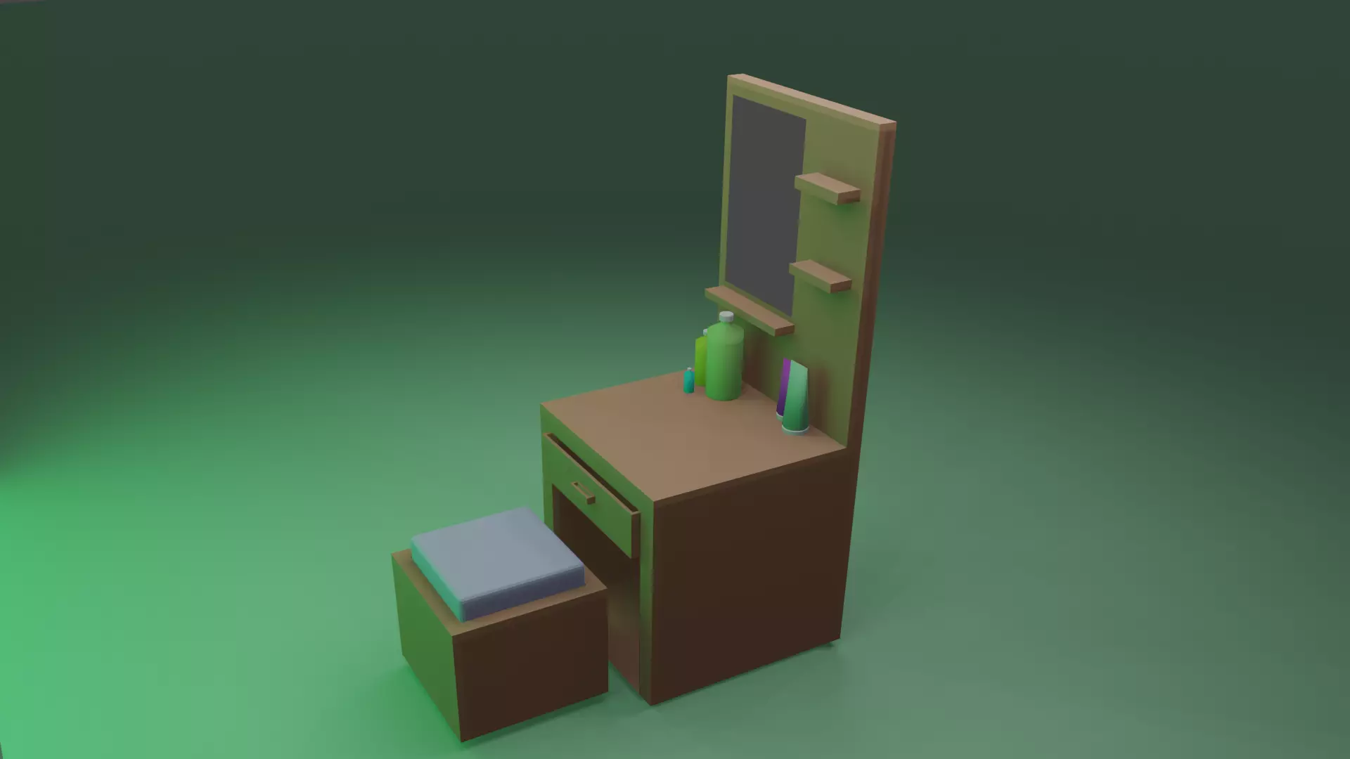The model has material settings that define how surfaces look (color, shine, transparency, etc.).