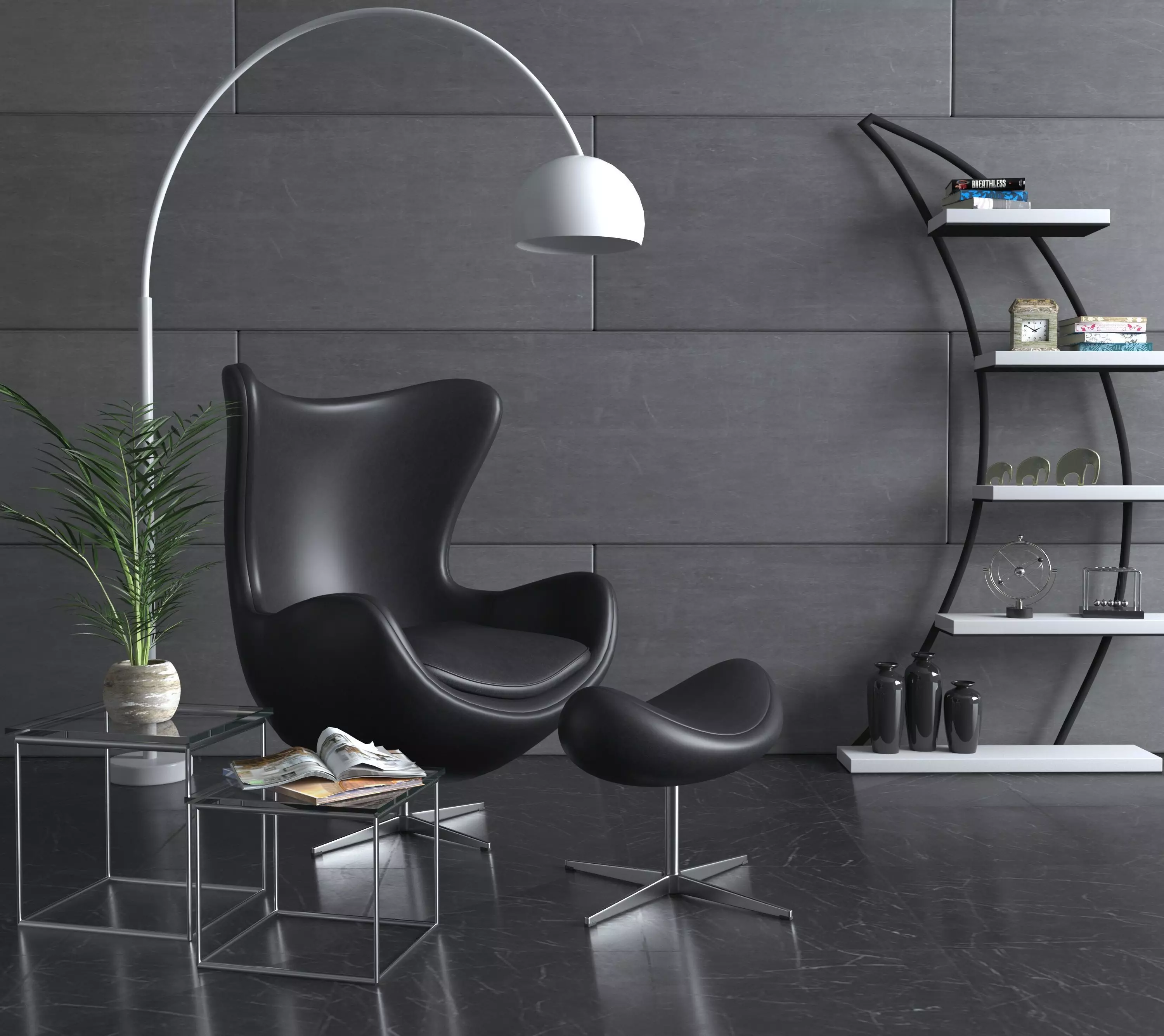 The model has material settings that define how surfaces look (color, shine, transparency, etc.).