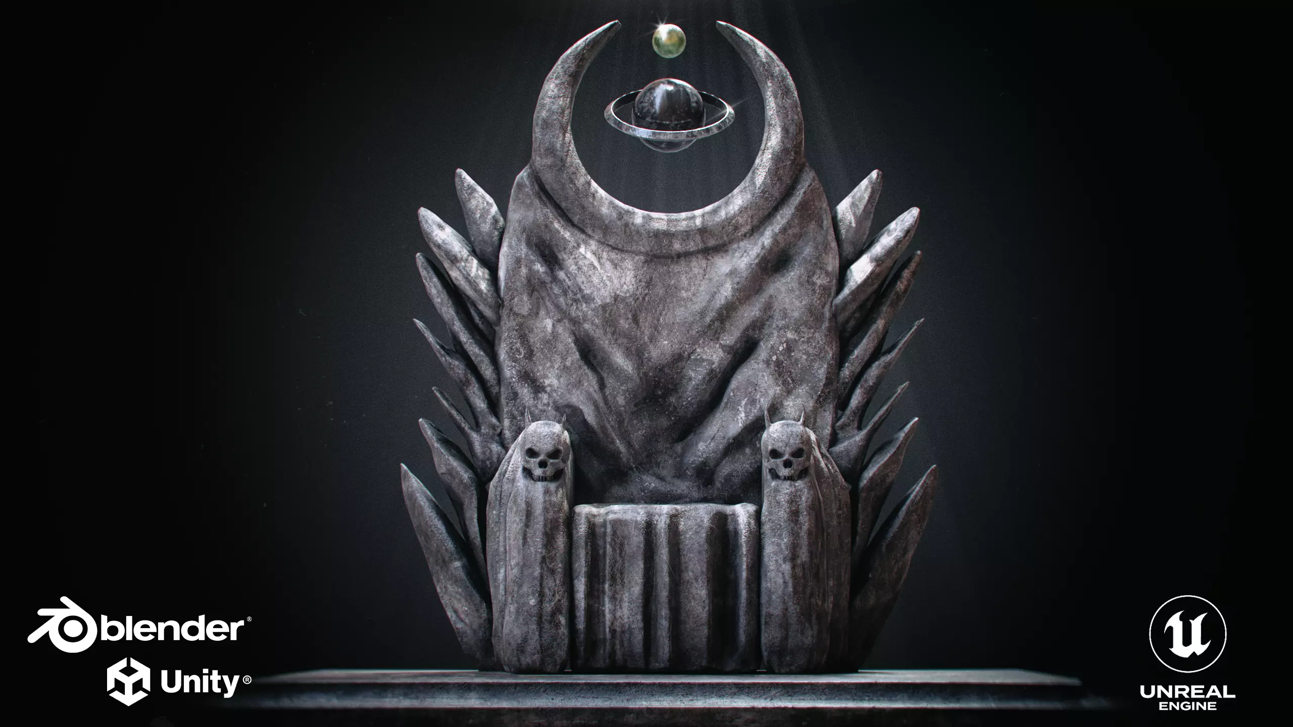A dark fantasy Evil Wizard Throne designed for villain characters, necromancers, and dark mages. The model features a gothic, intimidating design that works perfectly as a centerpiece for wizard towers, dark castles, dungeon halls, and boss rooms.