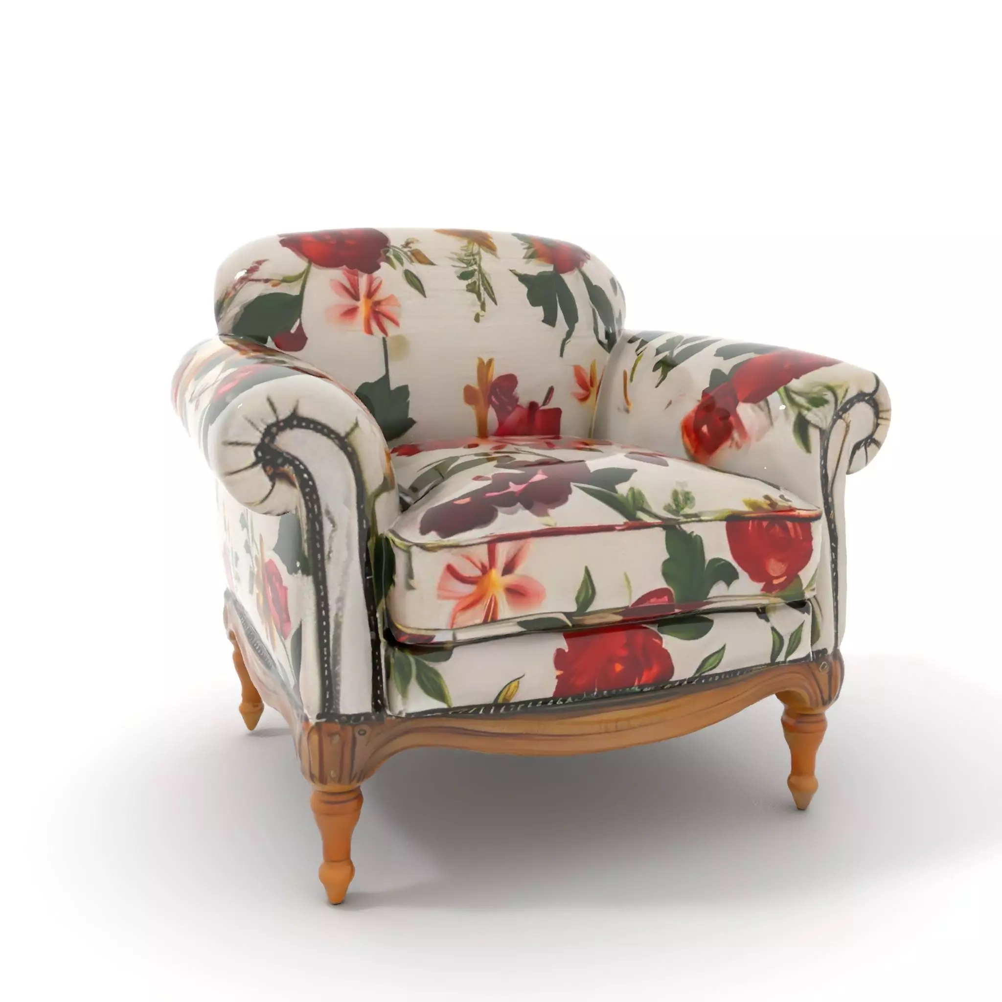This exquisite floral armchair model is perfect for adding a touch of elegance to living room, office, or lounge designs. Its classic floral pattern pairs beautifully with its wooden structure, making it a versatile piece for both modern and vintage-inspired interiors. Each model has 3 levels of detail: low-poly (1000 triangles for mobile), middle-poly (10,000 triangles for environment), and high-poly (100,000 triangles), which allows for the use of this model in production rendering (such as 3ds Max, Maya, Cinema4D, Blender, Vray/Corona/Cycles, and all others), game engines (Unity and Unreal compatible), and interactive presentations, providing a choice of detail based on the LOD System principle. Whether you're designing a cozy home environment or a high-class office, this model is an excellent choice. All textures are PBR, Diffuse, NormalMap, and reflection/roughness/metallic, suitable for any modern rendering engine. The model is accurately unwrapped with no overlapping UVs. All textures are 4096x4096 in size.If you like this model, please leave a comment and a like!
