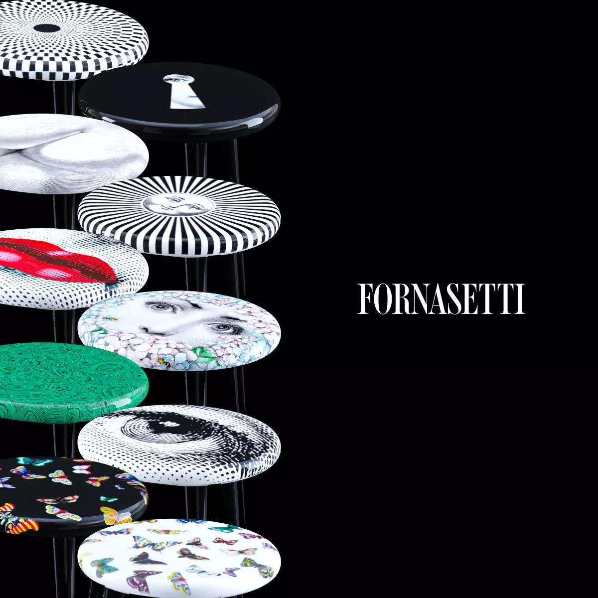 Fornasetti Stools Set Low-poly 3D model