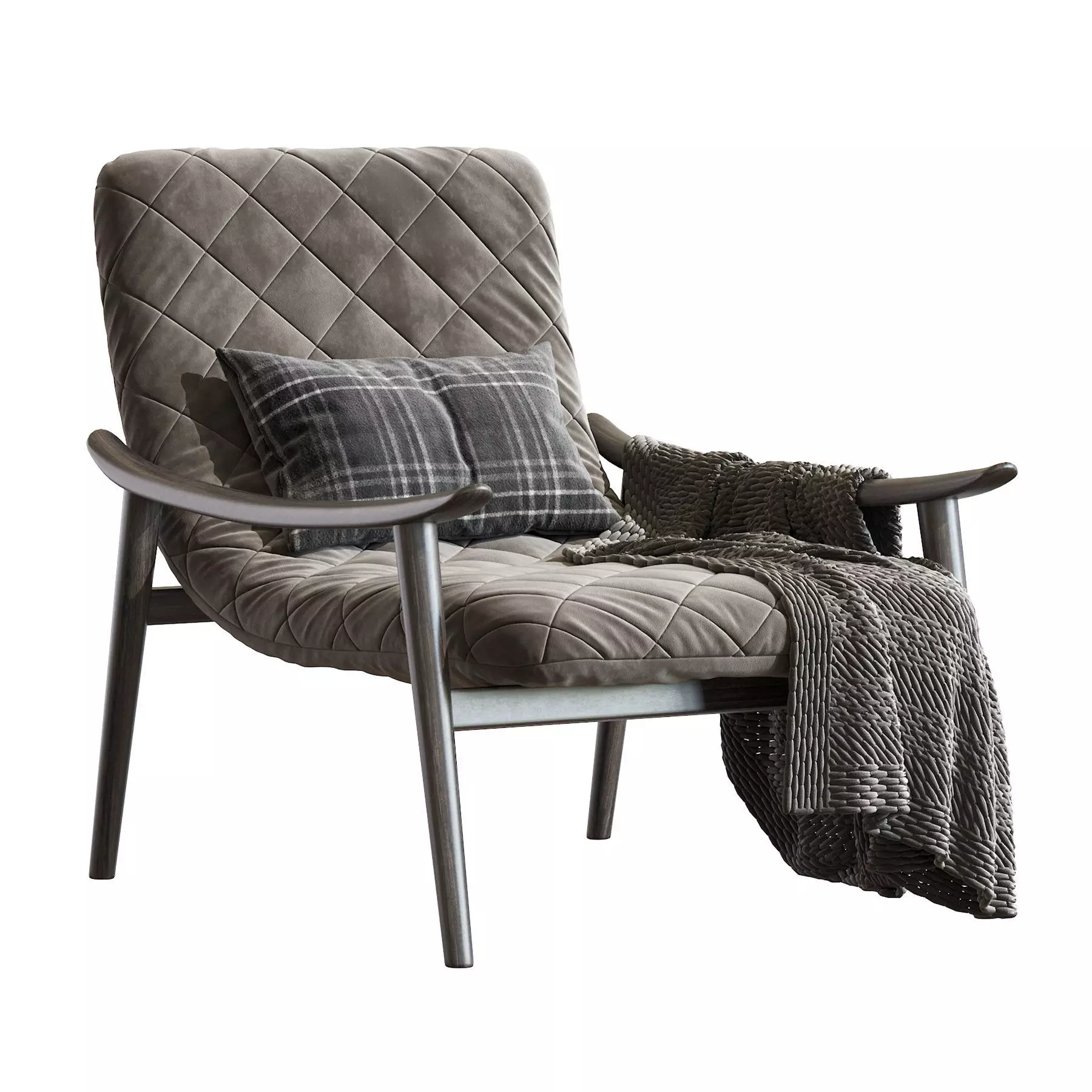 The Fynn armchair and little armchairs feature an ultra-lightweight aesthetic with a simple structure in ash wood with Liquorice colour stained finish. This hosts a padded seat and backrest cushion, designed as a single element.