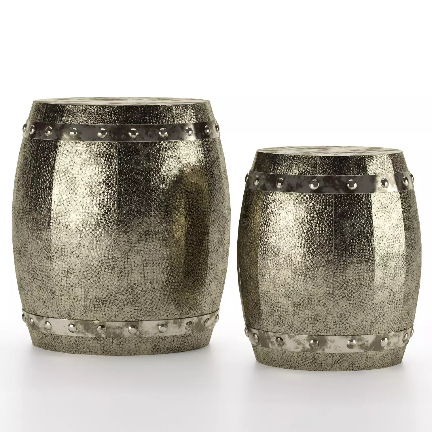 Model reference: Set of 2 Hammered Drum Stools with Antique Silver Finishhttps://www.laredoute.co.uk/ppdp/prod-350233987.aspx#shoppingtool=multipdp https://www.wayfair.co.uk/furniture/pdp/world-menagerie-szeto-hammered-drum-2-piece-stool-set-wlme2158.html