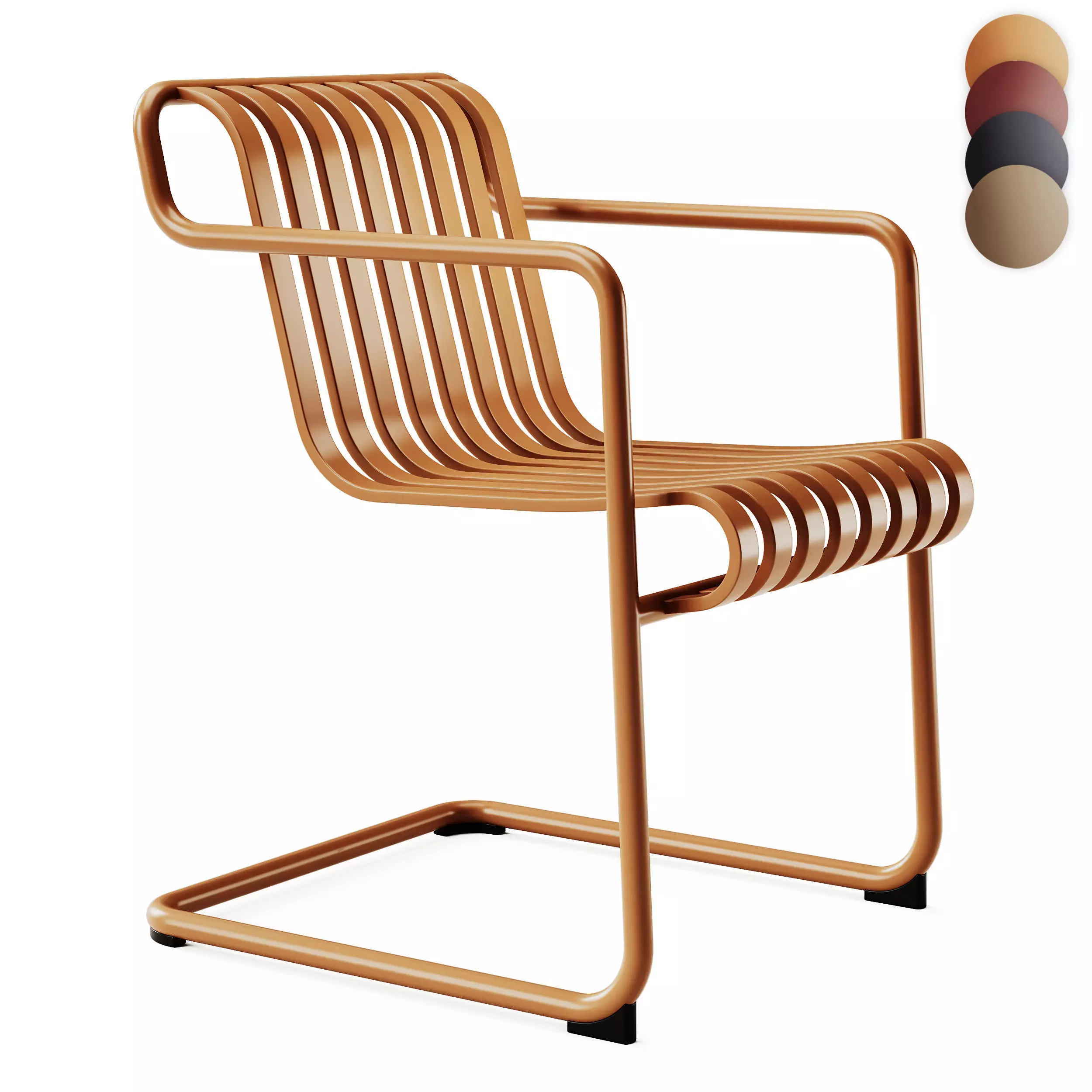 Stylistic Features:The collection showcases a bold, industrial aesthetic with premium metal and plastic finishes. This cantilever dining armchair perfectly embodies contemporary and minimalist design, making it a versatile choice for high-end residential and commercial hospitality projects. Ideal as a functional accent or dining seating in luxury gardens, modern terraces, or creative outdoor lounge areas. Its sleek slatted profile with armrests and durable construction ensure a sophisticated look for innovative exterior design.
