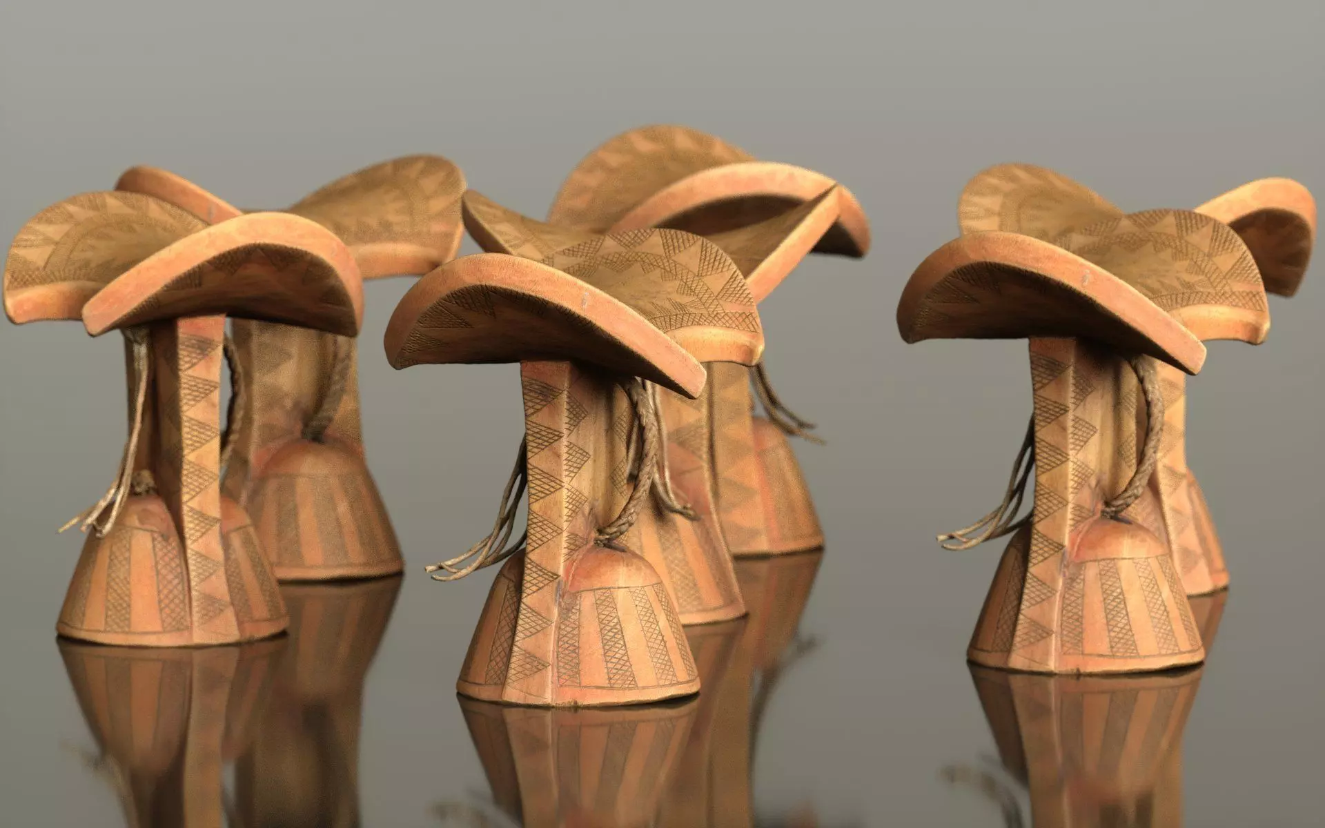 Wooden Africa Headrest - 3D Model. Designed to preserve very elaborate hairstyles during sleep.