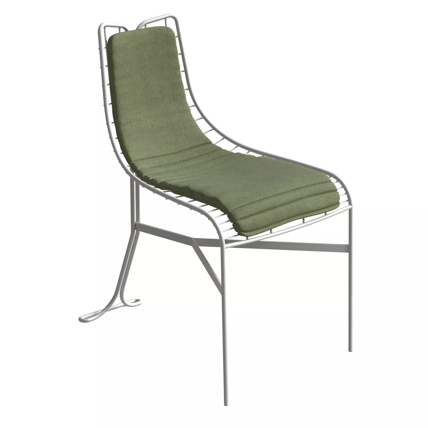 A triumph of minimalism, the Capricorn Dining Chair features a three-legged base formed from a continuous bent rod that flows into a wire basket seat. A tailored cushion adds comfort, while powder-coated stainless steel ensures durability and a sculptural silhouette.
