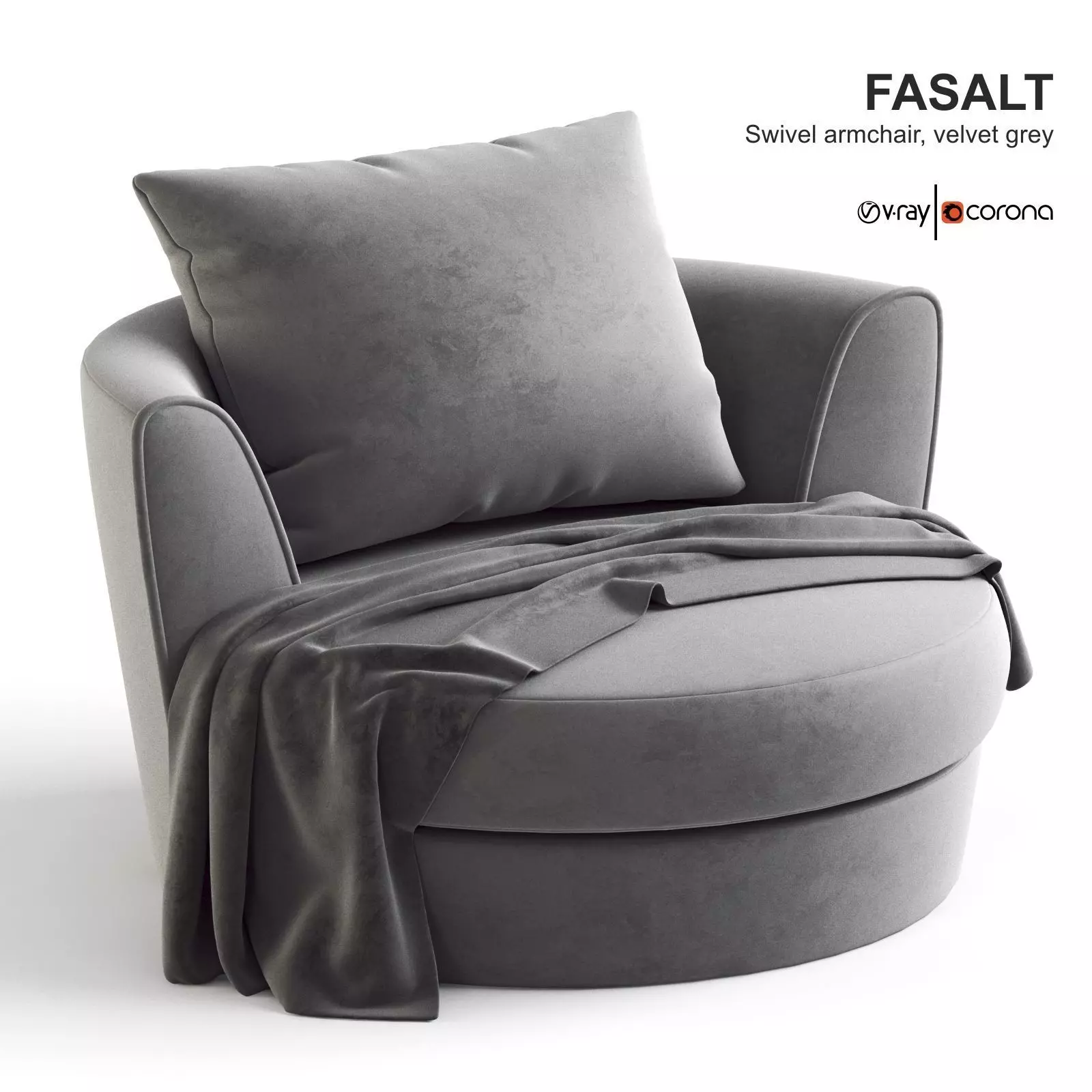 FASALT Swivel armchair velvet grey 3D model