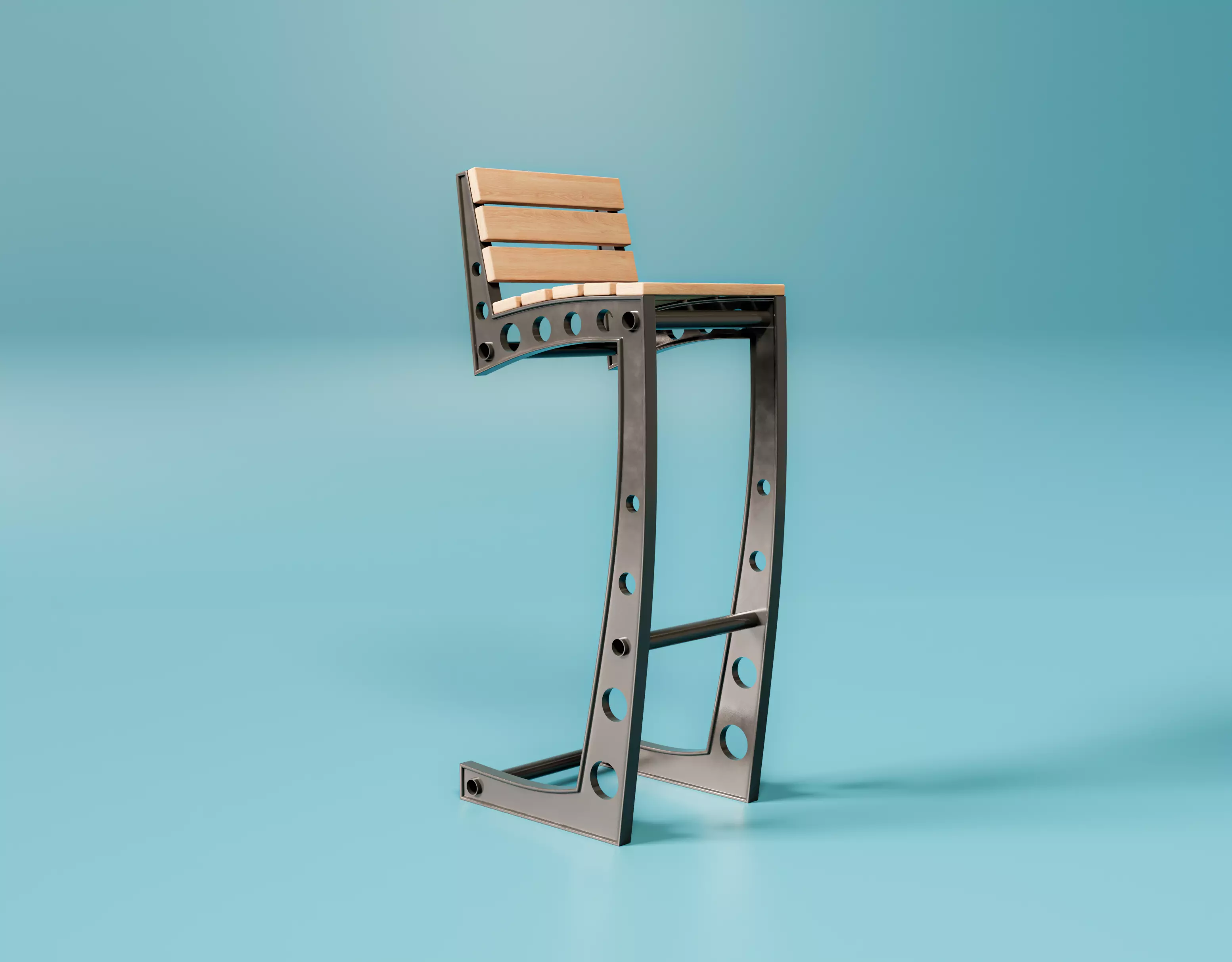 Industrial bar stool chair with meltal and wood.Fine details, high polymesh, clean topology.