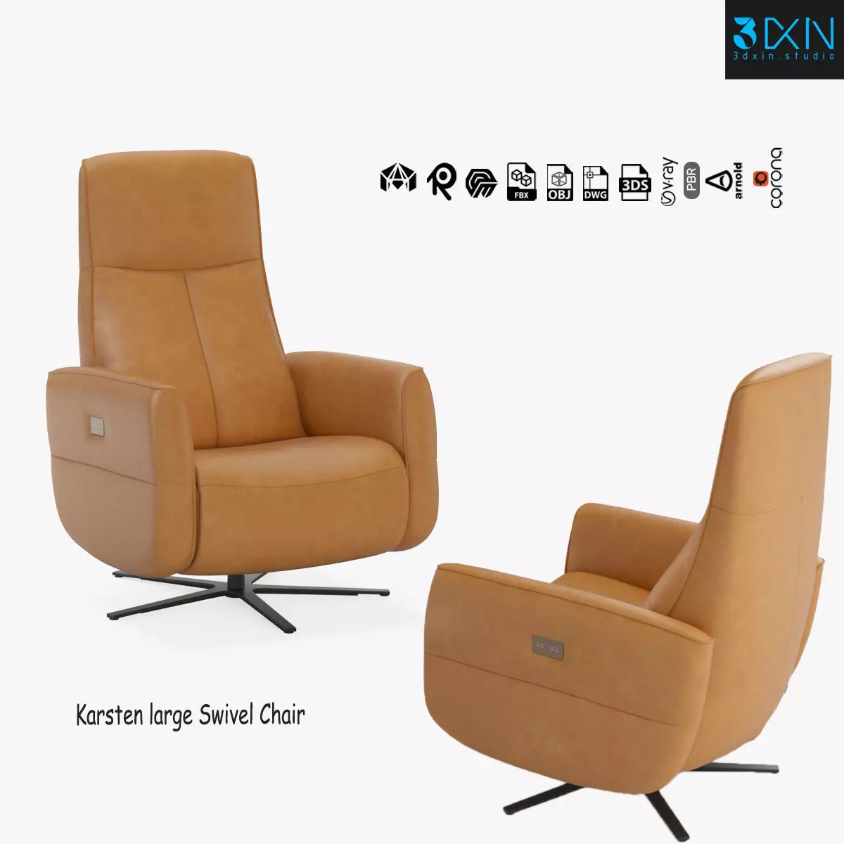 Karsten large Swivel Chair is a high quality, photo realistic 3d model that will enhance detail and realism to any of your rendering projects. The model has a fully textured, detailed design that allows for close-up renders, and was modeled in 3ds Max 2018 also has 3ds Max 2015 version and rendered with V-Ray. Renders have no post-processing.