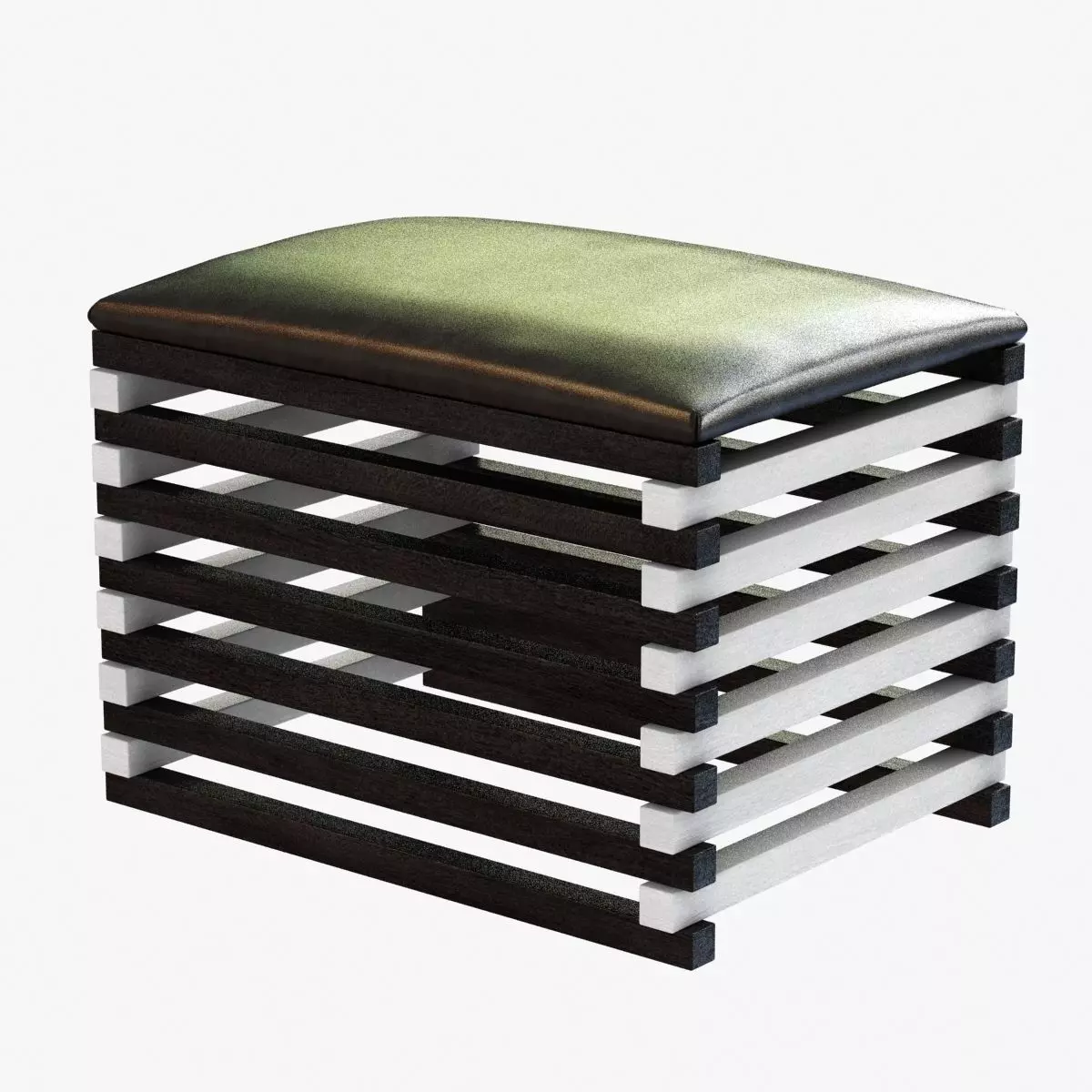 The high-contrast, alternating ebonized and bleached walnut slats of the Hauser Ottoman form a modern, airy, sculptural look that showcases a tailored seat cushion in textured leather. These Stools can be grouped together to form a seating area or low table.