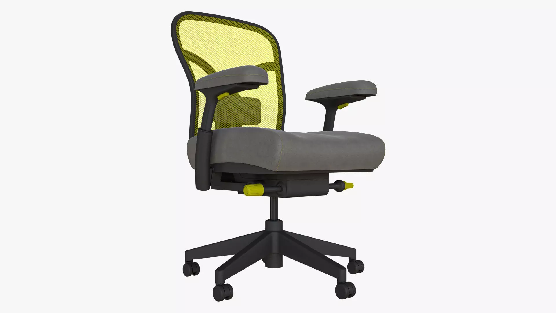 Detailed 3D model of a leather low back ergonomic office chair, modeled in Cinema 4D and rendered with V-Ray 5. The model was created using approximate real world dimensions.