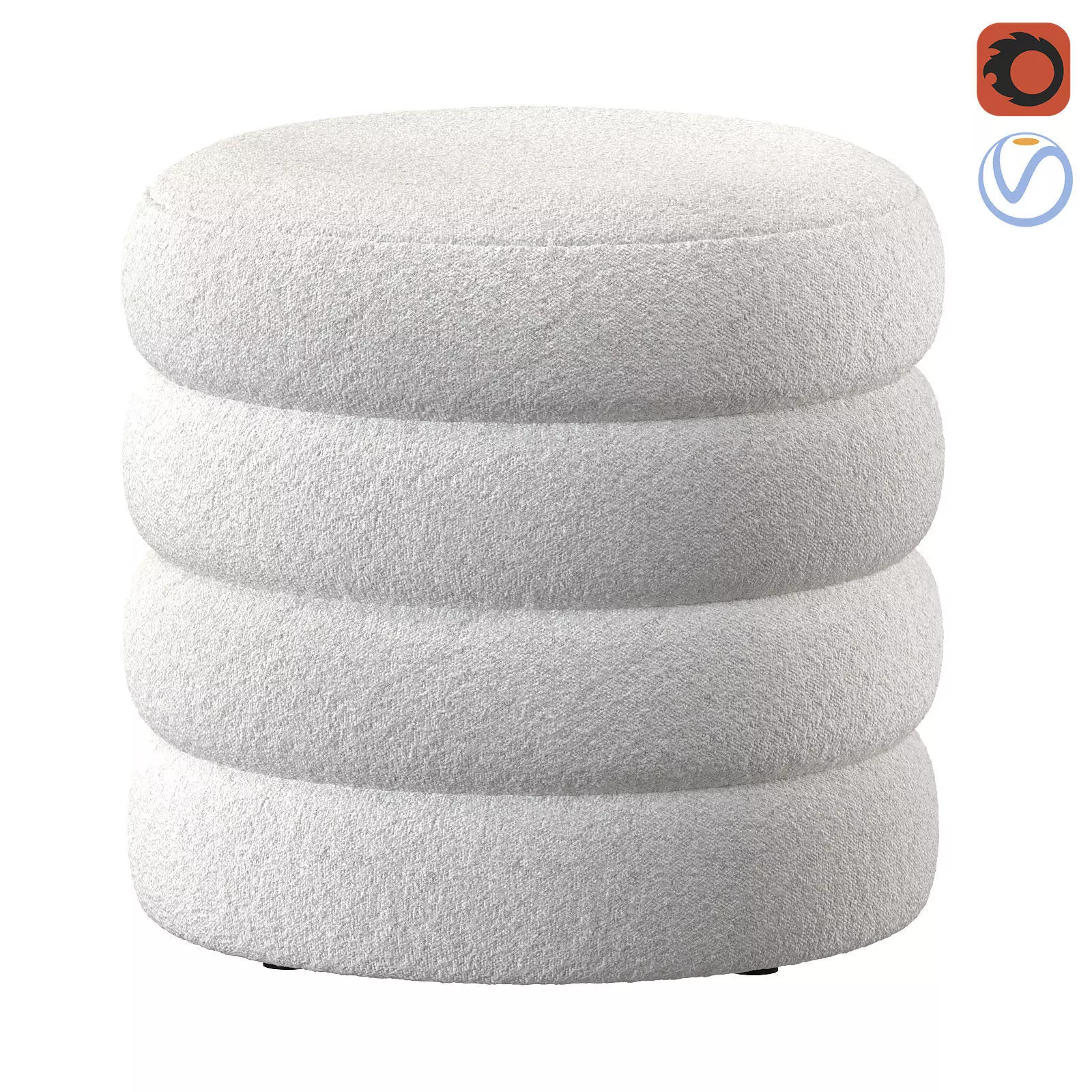It is the high-quality hi-poly smoothable 3D model boucle ottoman used in various fields 3D Graphics such as: game development, advertising, interior design, motion picture art, visualization, etc..