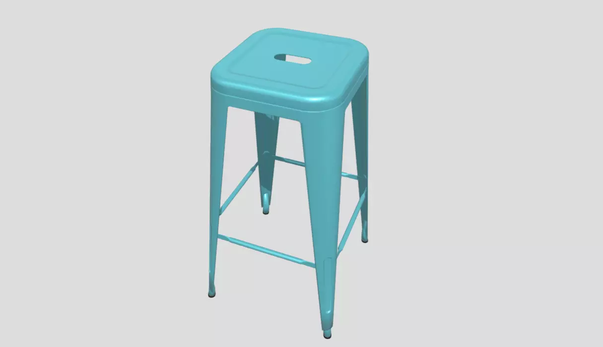 Metallic Stool in 3D, Industrial furniture in coloured metal in 3d.