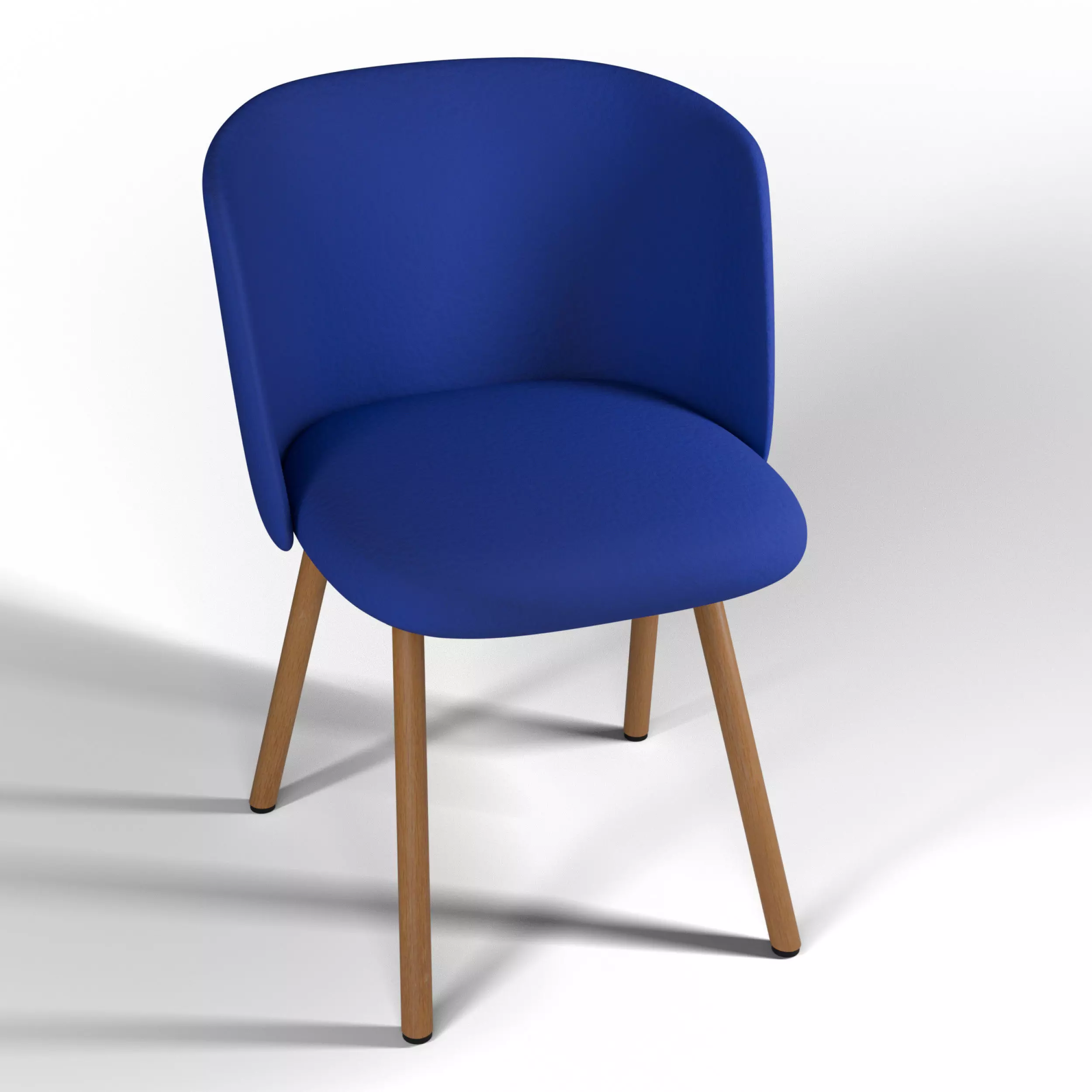 The material of the model is Blue fabric, light oak and black textured plastic.