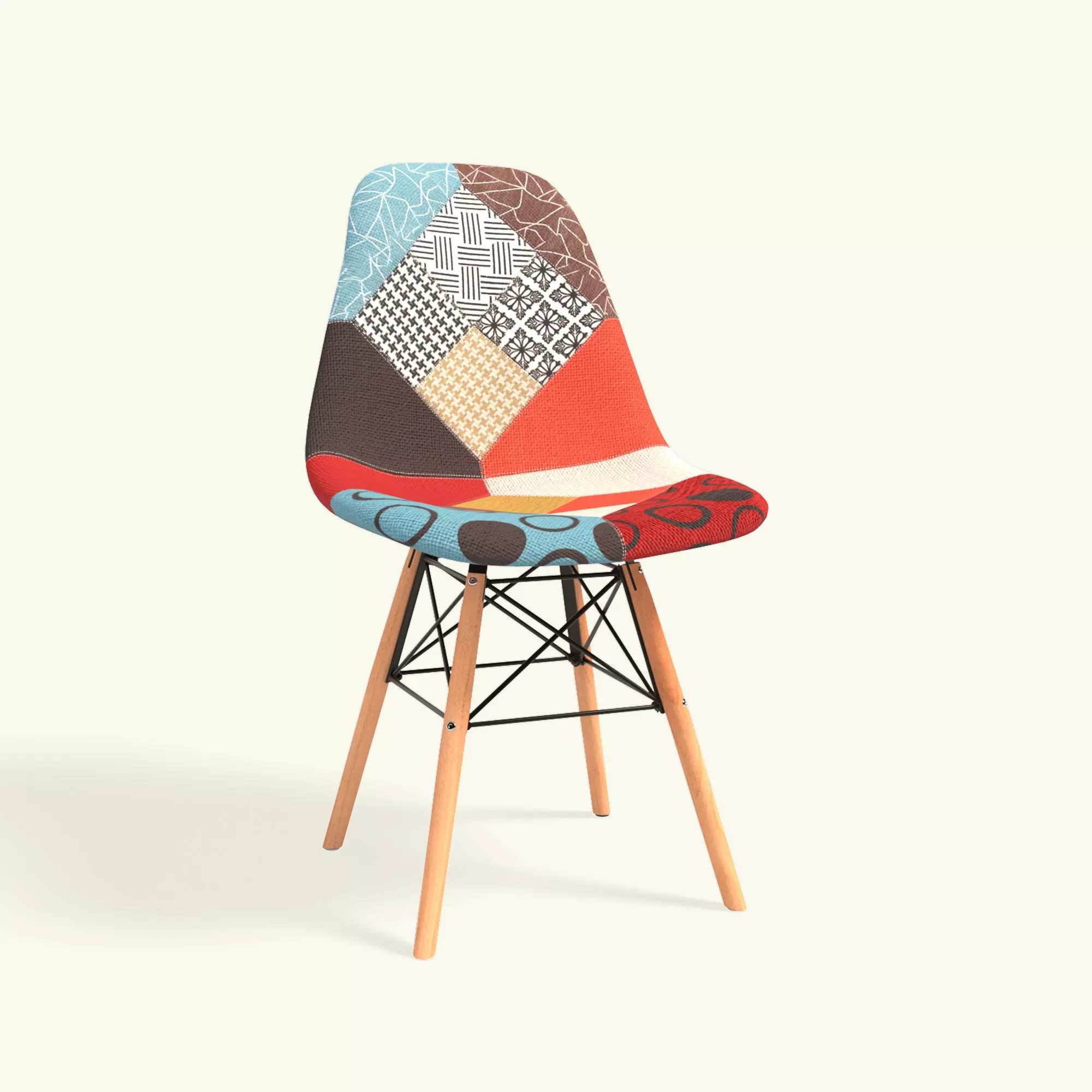 Bring a pop of color and modern style into your interior with this patchwork dining chair. Featuring a unique fabric upholstery with a mix of vibrant geometric and patterned designs, this chair is perfect for adding a creative touch to your dining room, office, or living space.