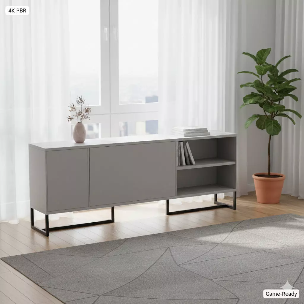 Modern Minimalist Sideboard - Grey Cabinet with Metal Legs Low-poly 3D model