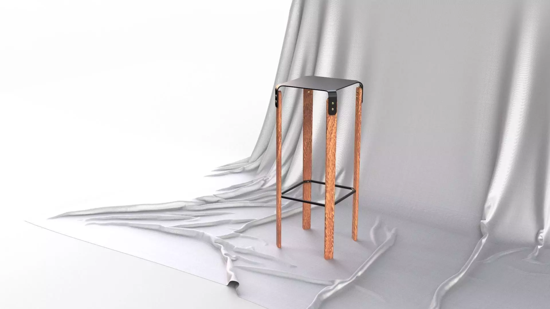 A real masterpiece of design!The design of this stool is so simple. It consists of three different pieces - the legs, the seat and the footrest. The four legs of this stool are made from walnut and are connected together by steel bars that act as the footrest. The seat plate is made of blackened steel and is connected with brass rivets to the legs.It’s a one-of-a-kind design that you will not find anywhere else.Use it as you please in any possible scenario.It will work great in any kitchen or next to any bar counter. It could also be used as just an interior decoration piece or as a stand for any object of your wish.
