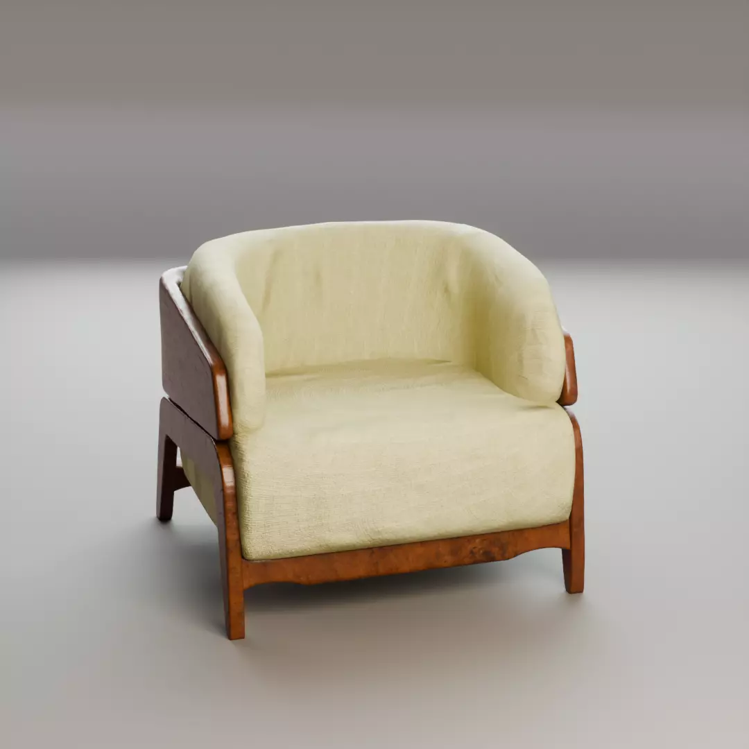 A high-quality modern wooden armchair 3D model featuring realistic fabric upholstery, detailed wood materials, and clean construction. This model is ideal for architectural visualization, interior design projects, product rendering, and any scene that requires premium furniture assets.