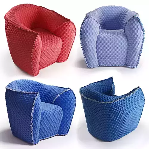 The scene has three colors of armchairs, red, blue and pale purple.The manufacturer offers dozens of colors and types of fabric.