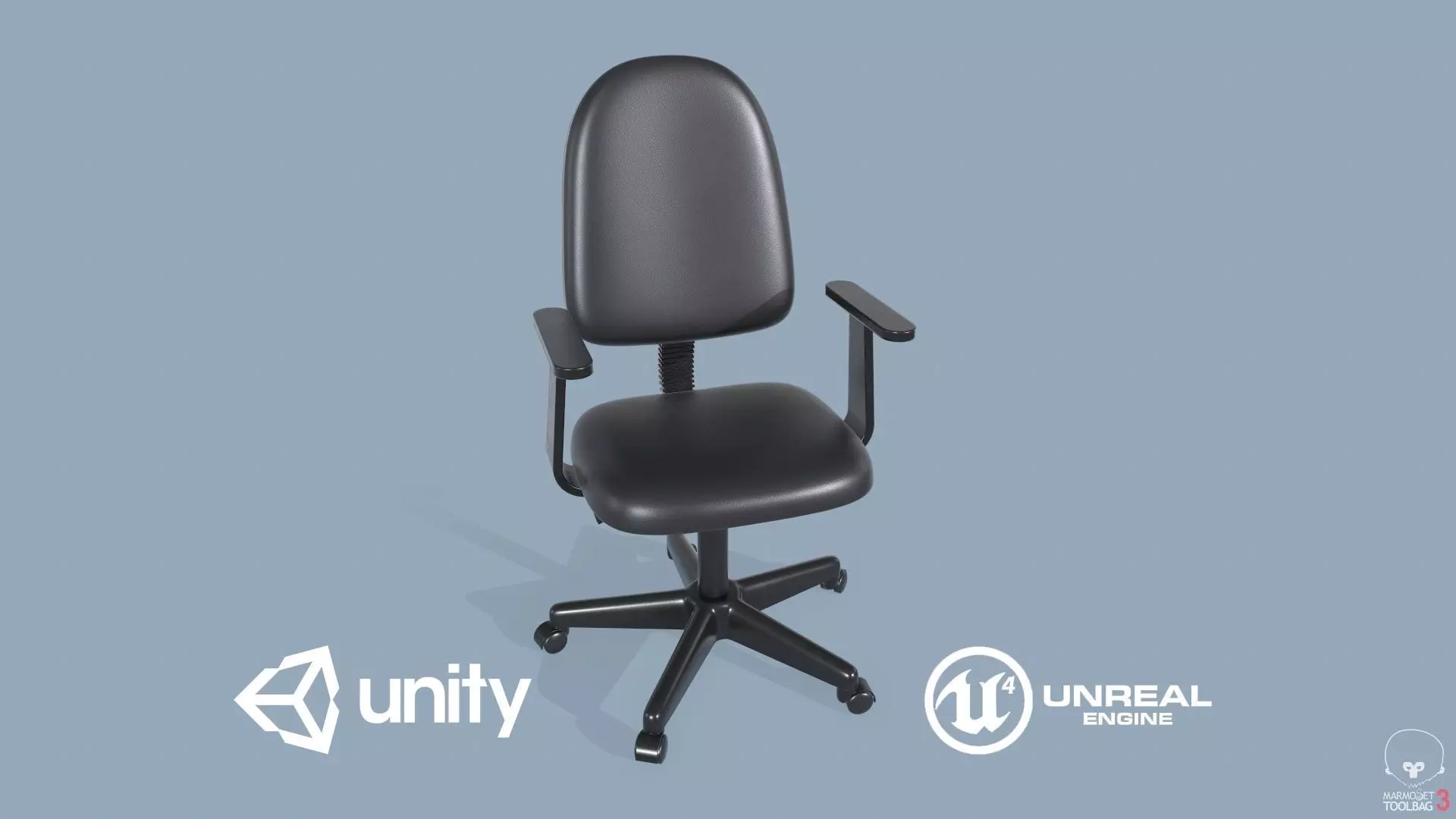 Game ready low-poly Office Chair model with PBR textures for game engines/renderers.