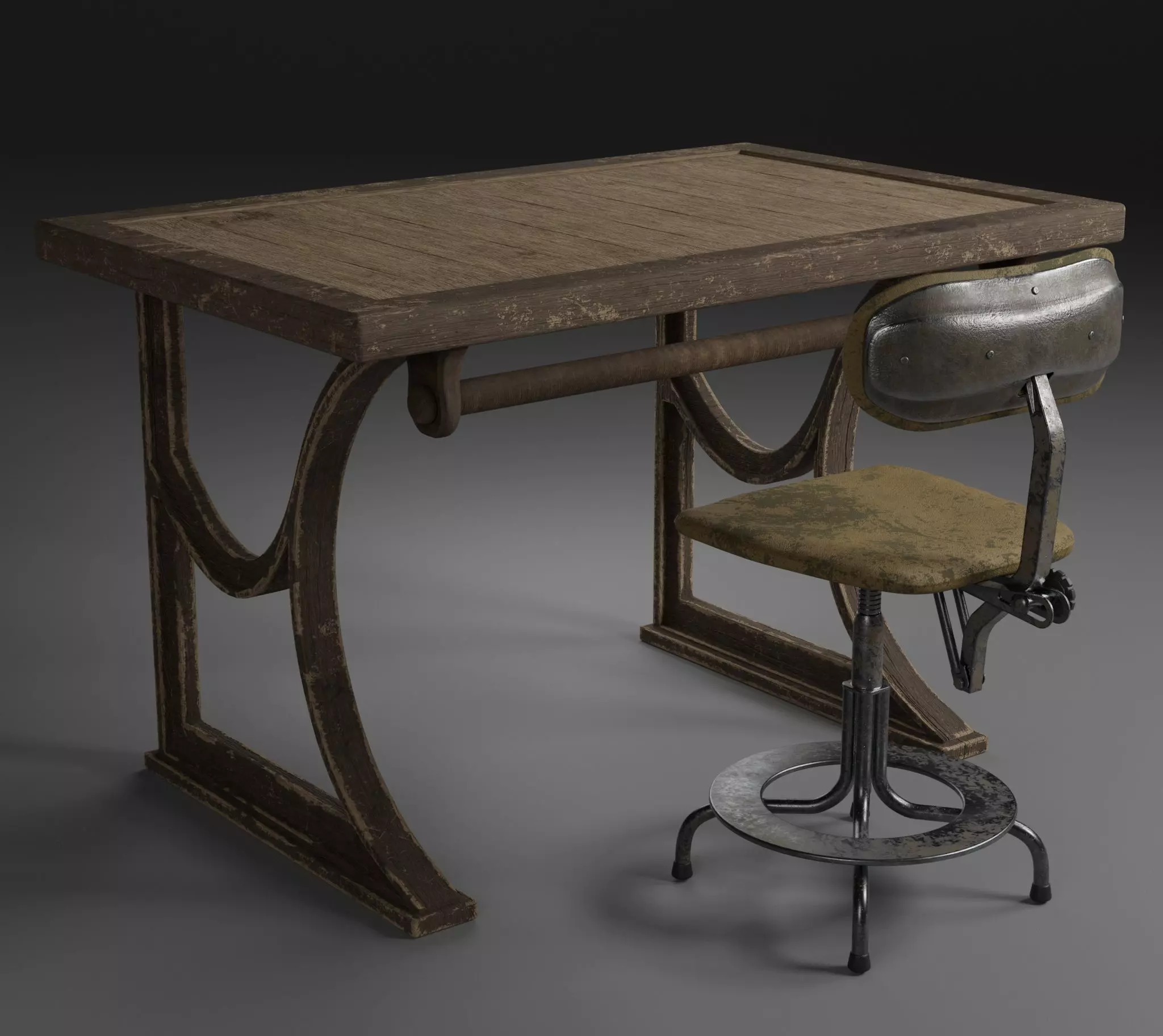 CHAIR INFO : vertices: 49,579edges: 98,446faces: 48,923triangles: 98,970DESK INFO: vertices: 30,068edges: 60,110faces: 30,064triangles: 60,084all of textures paint in substance painter