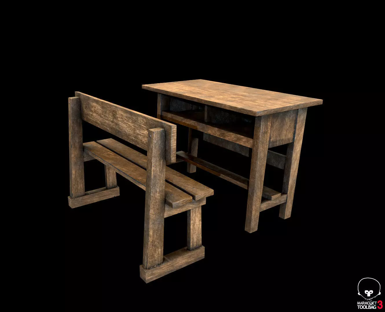 Old School Wooden Desk Low-poly 3D model