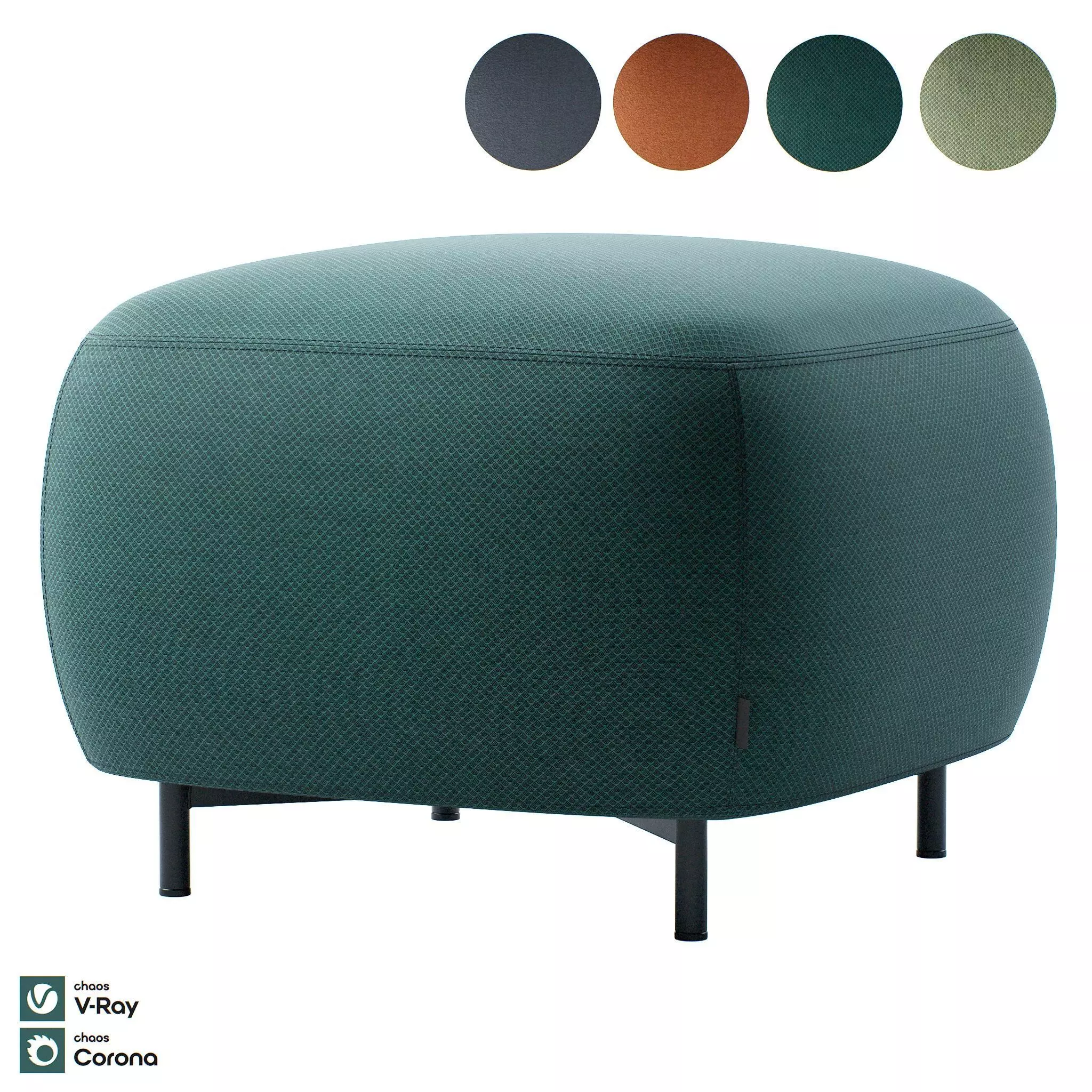 This 3d model Ottoman 210 has fully textured, detailed design that allows for close-up realistic renders. The model has several materials: 4 fabric colors, 2 metal colors.