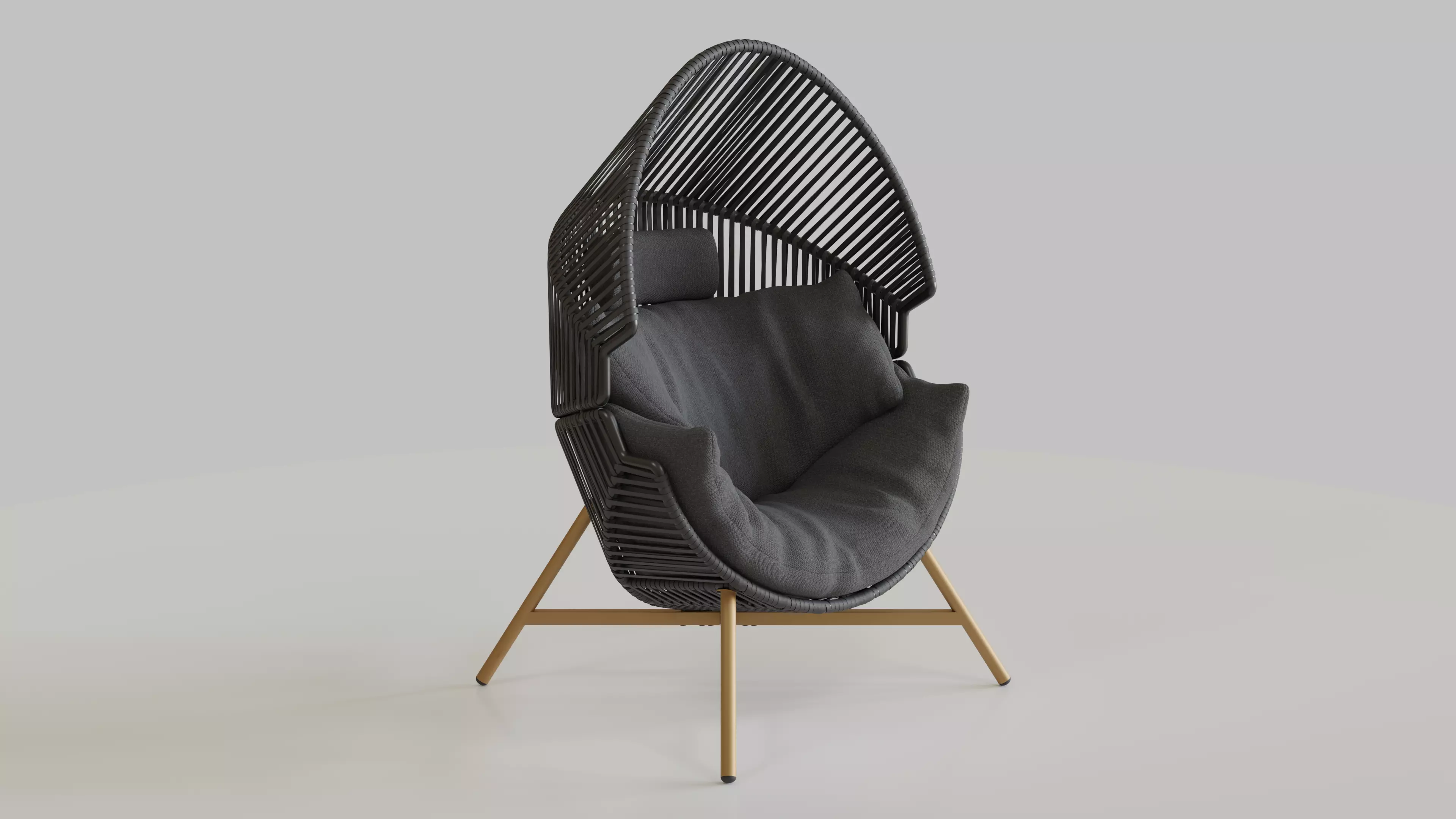 The file includes an Outdoor Cocoon Chair. The model was made looking for a balance between realism and a model without an exaggerated amount of polygons, so as not to compromise the rendering work. The model is great for composing the scene.