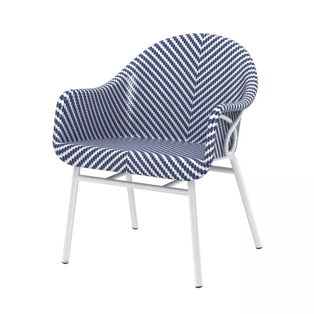 ABIGAIL OUTDOOR OCCASIONAL CHAIR Seat fully woven in blue and white synthetic peel with maximum UV protection. White powder coated frame, legs and back details. Available only as shown.Measurements25.25w x 24.25dp x 31.5hArm Front: 25;Seat Height: 18.5"Suitable for Contract use.Suitable for Outdoor use.Truck Shipment.Weight 19 lbs.