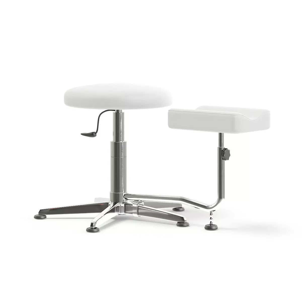 White pedicure stool 3d model with a leg rest. Compatible with 3ds max 2010 (V-Ray, Mental Ray, Corona) or higher, Cinema 4D R15 (V-Ray, Advanced Renderer), FBX, OBJ and Unreal Engine.