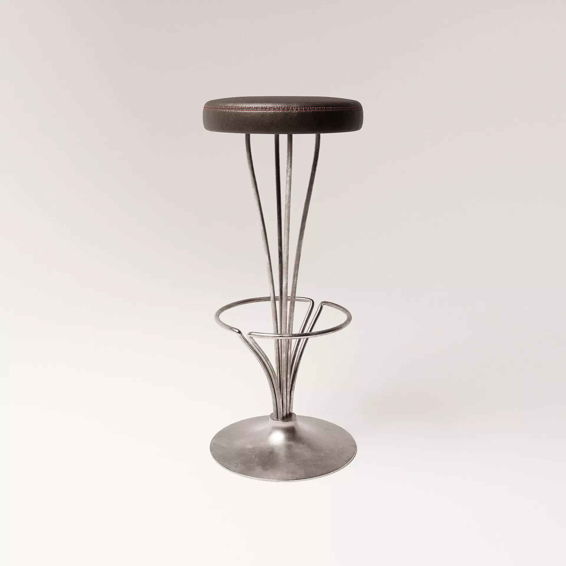 Piet Hein for Fritz Hansen, barstool, metal, leather, Denmark, 1970s