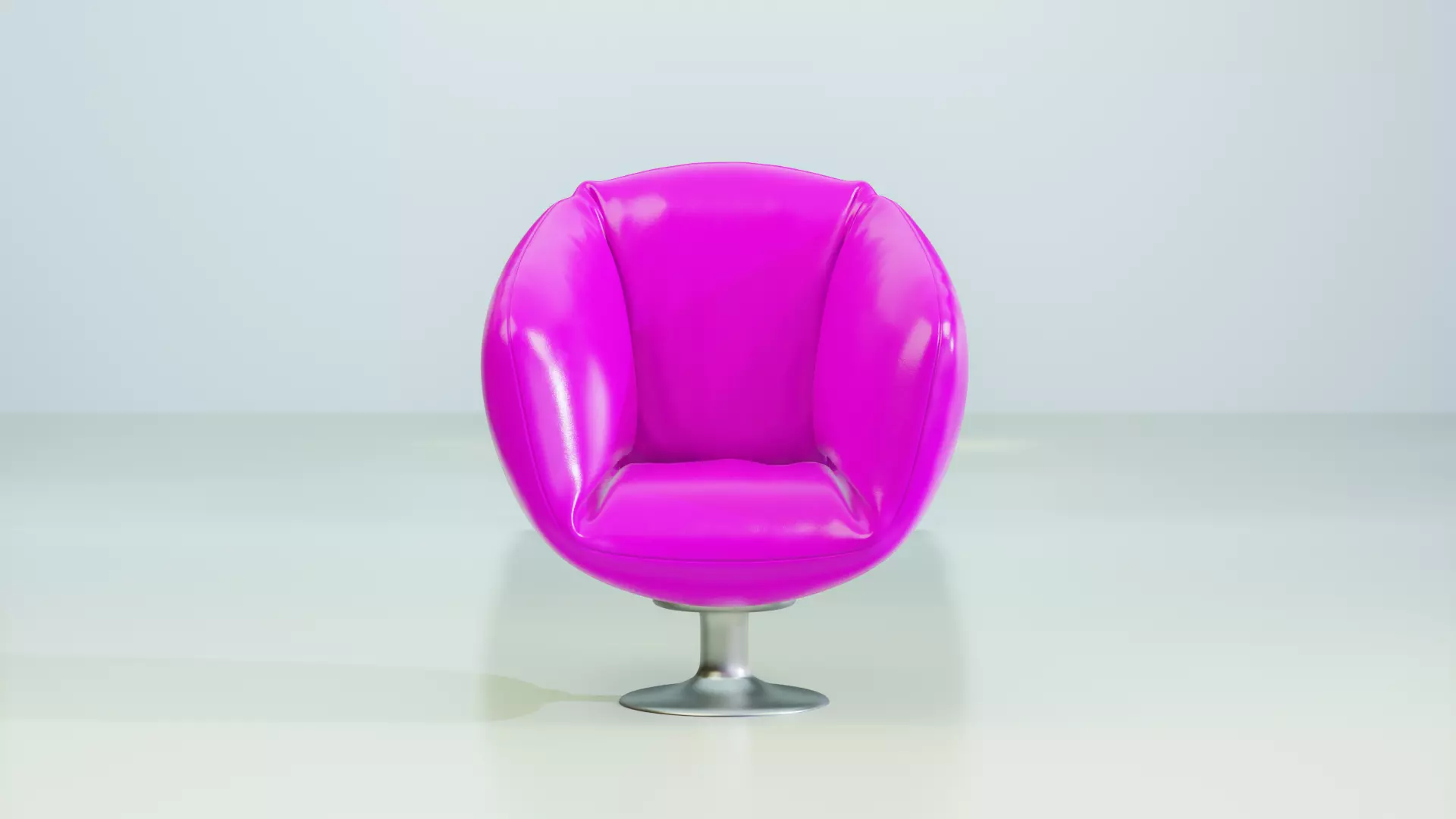 This chair features a sleek round shape with plush, voluminous cushions wrapped in glossy pink leather. The base is a stylish chrome pedestal that enhances its modern aesthetic. Ideal for living rooms, office lounges, boutique lobbies, or luxury digital sets, this model is ready for use in both real-time applications and photorealistic offline rendering.