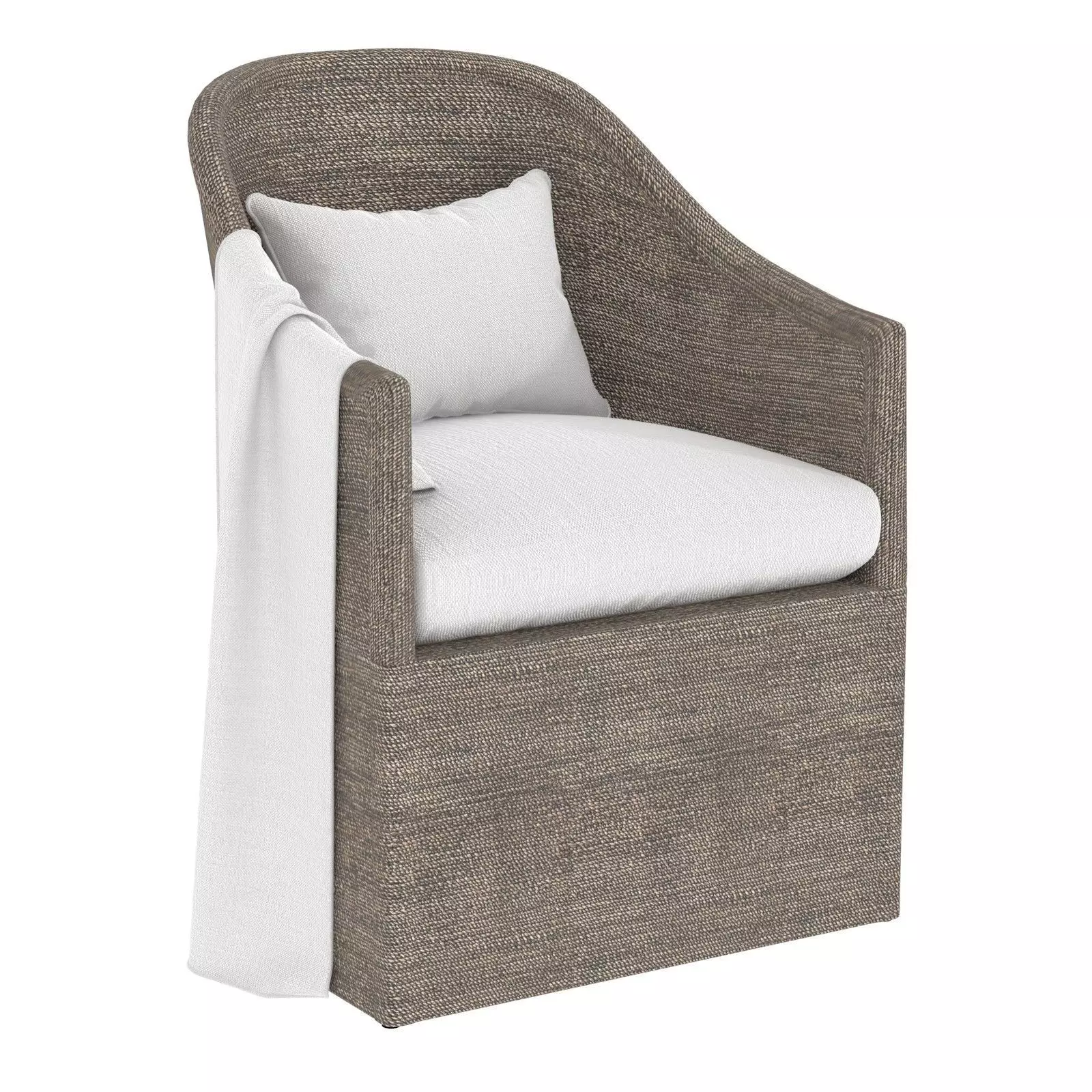 With its streamlined silhouette, our collection marries 1950s modernism and earthy elegance. The angular frame features a wraparound back, slim track arms and a demilune skirted base, all hand woven of natural seagrass.Handcrafted kiln-dried mahogany frame is wrapped in handwoven lampakanay, a sustainably harvested Philippine seagrassSeat cushion is generously padded with high-resiliency foamThis item is artisan crafted from natural materials with meticulous care. Inherent variations in the color and texture of the seagrass are to be expected and celebrated. Each item is unique and no two are exactly alike.Professional upholstery cleaning recommended. Wipe seagrass with a soft, dry cloth; avoid direct sunlight and heat to protect the finish.DIMENSIONS