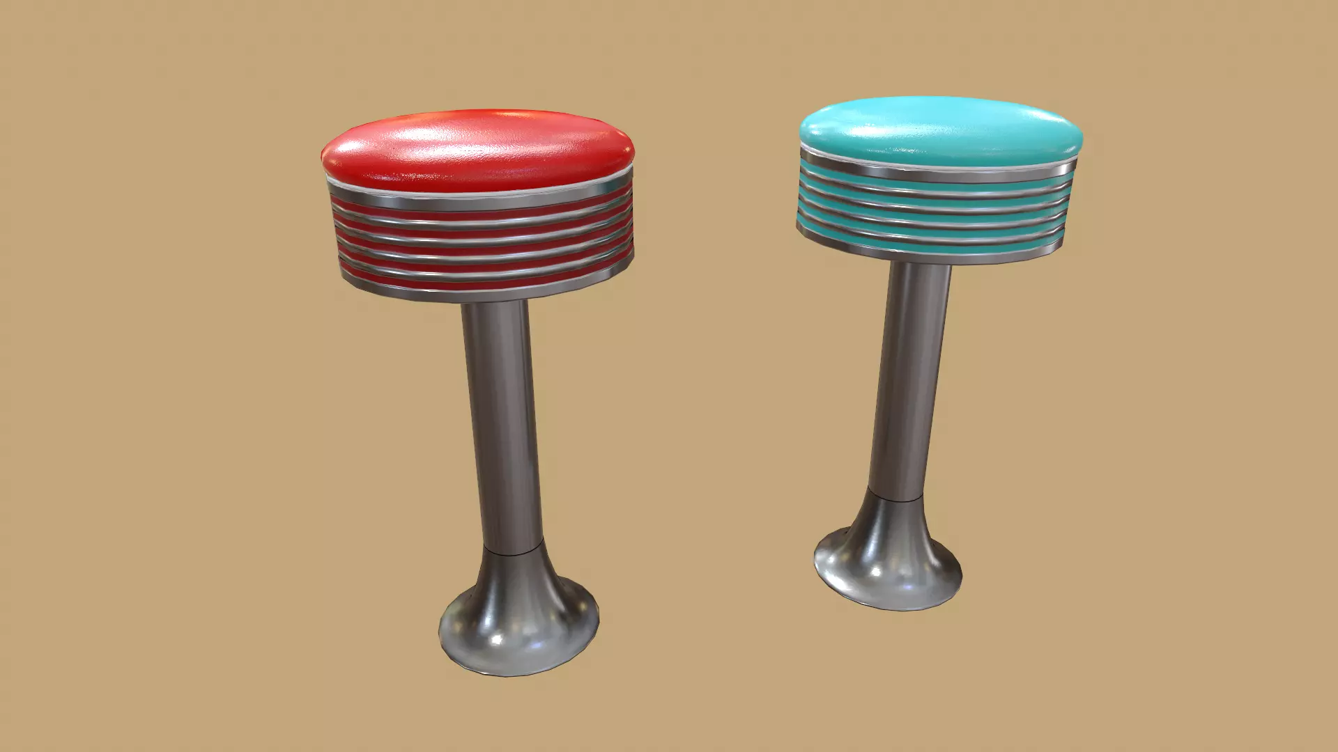 A vintage 1950's-60's chair found in most American diners. Modeled based on real-life measurements.
