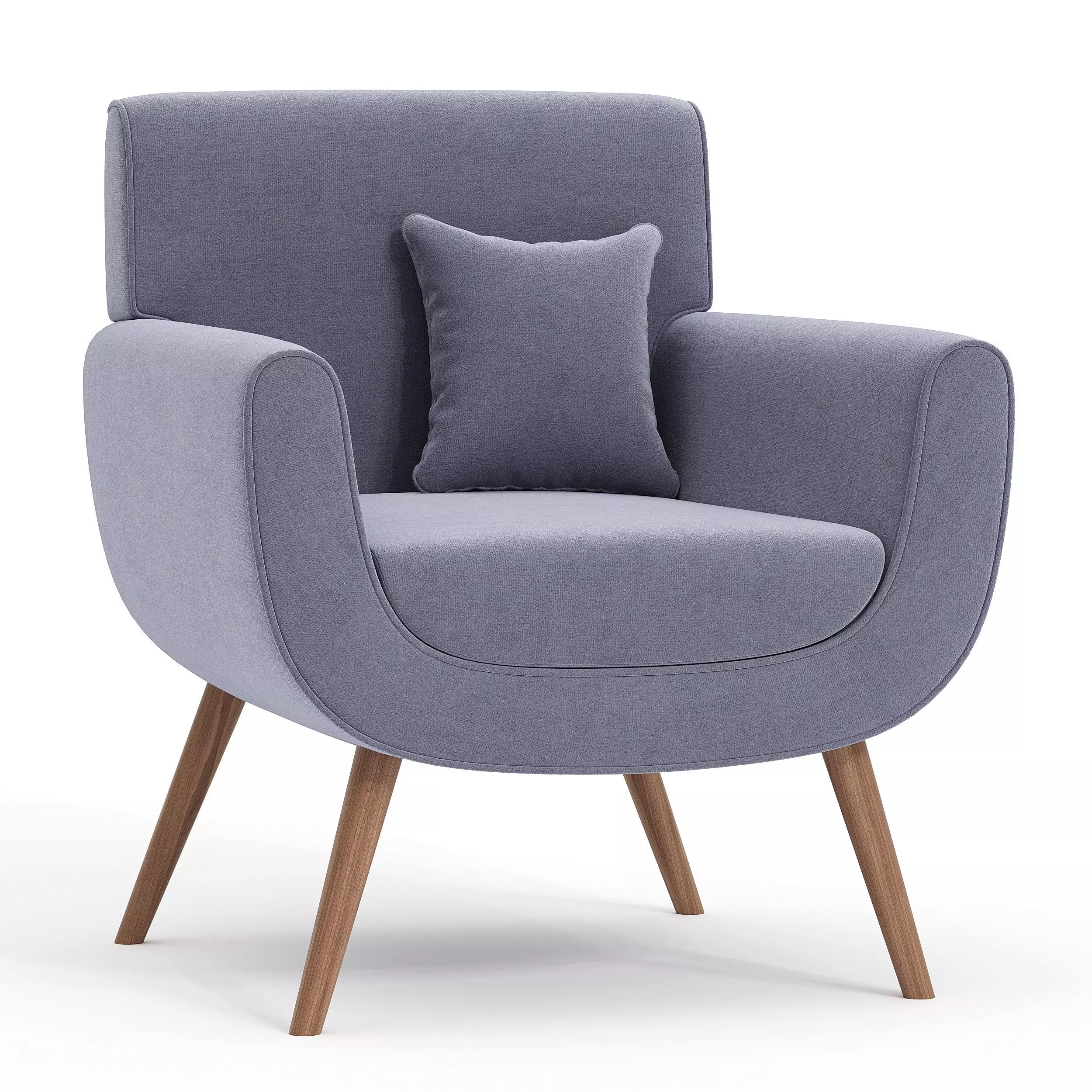 The Serene Horizon Armchair is a perfect fusion of mid-century modern design and contemporary comfort, designed to bring a touch of understated elegance to any living space. Upholstered in a soothing slate blue fabric, this armchair features a smooth, velvety texture that invites you to sink in and relax. The chair’s sleek, rounded silhouette is complemented by a high, slightly angled backrest and gently curved armrests, providing excellent ergonomic support for extended lounging. A matching square cushion adds an extra layer of coziness, making it ideal for curling up with a book or enjoying a quiet evening. The sturdy wooden legs, finished in a warm walnut tone, are angled in a classic mid-century style, lending the piece a timeless appeal while ensuring stability and durability. The combination of the soft blue upholstery and natural wood creates a harmonious balance, making this armchair a versatile addition to various interior styles, from Scandinavian-inspired minimalism to eclectic modern decor. Perfect for living rooms, reading nooks, or even a stylish home office, the Serene Horizon Armchair offers both functionality and aesthetic charm, effortlessly enhancing the ambiance of any room with its refined yet approachable design.