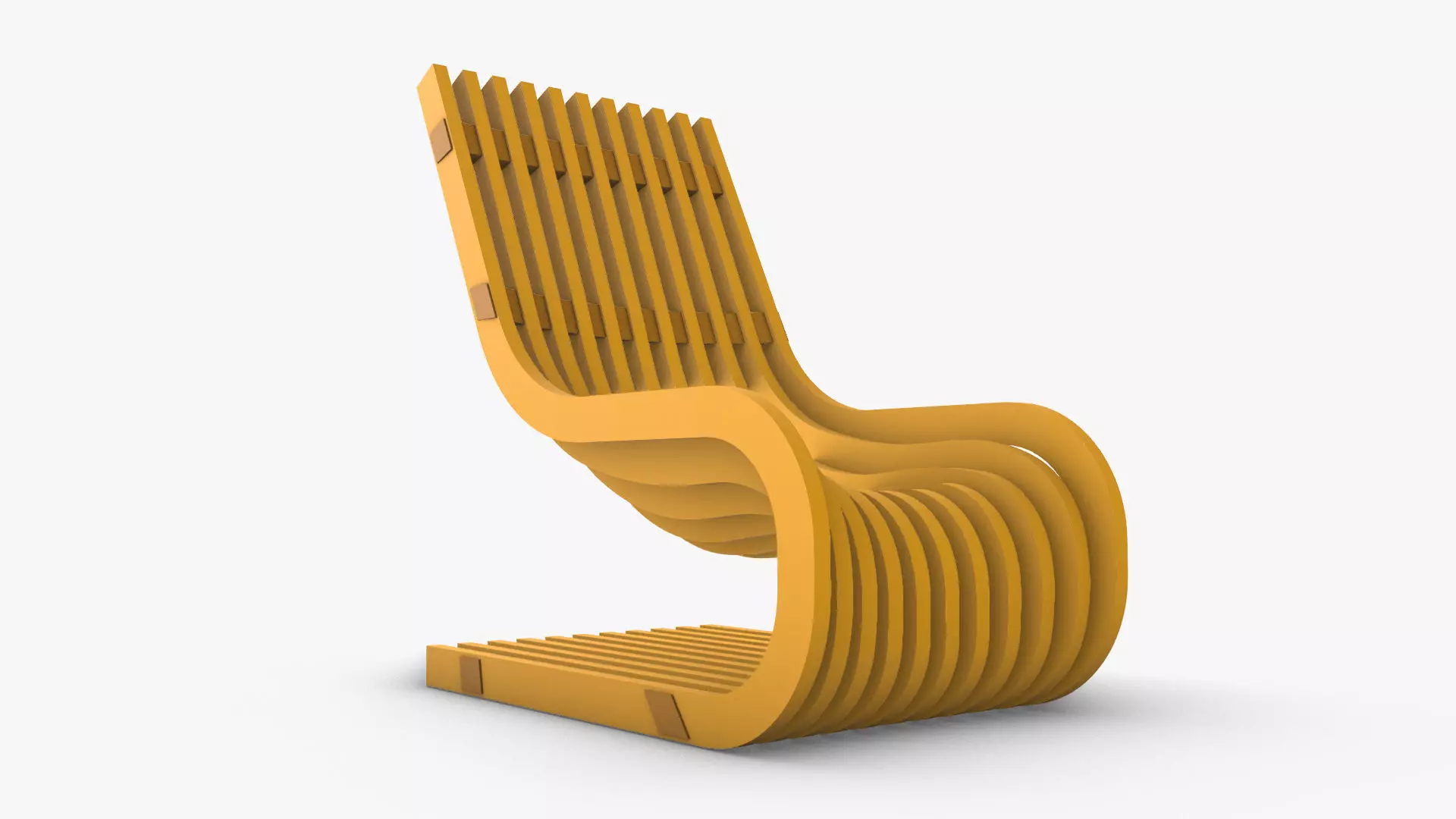A Modern Chair with a Sci-Fi form and Sliced Sections, it has a Smooth plastic continous surface, the model has a minimalist unique form that adds a futuristic vibe to the architectural environment, the model was created using computational parametric tools to achieve the most accurate geometry with clean details, it could be used for architectural render purposes indoors, and also for interior design, furnishing and decoration.