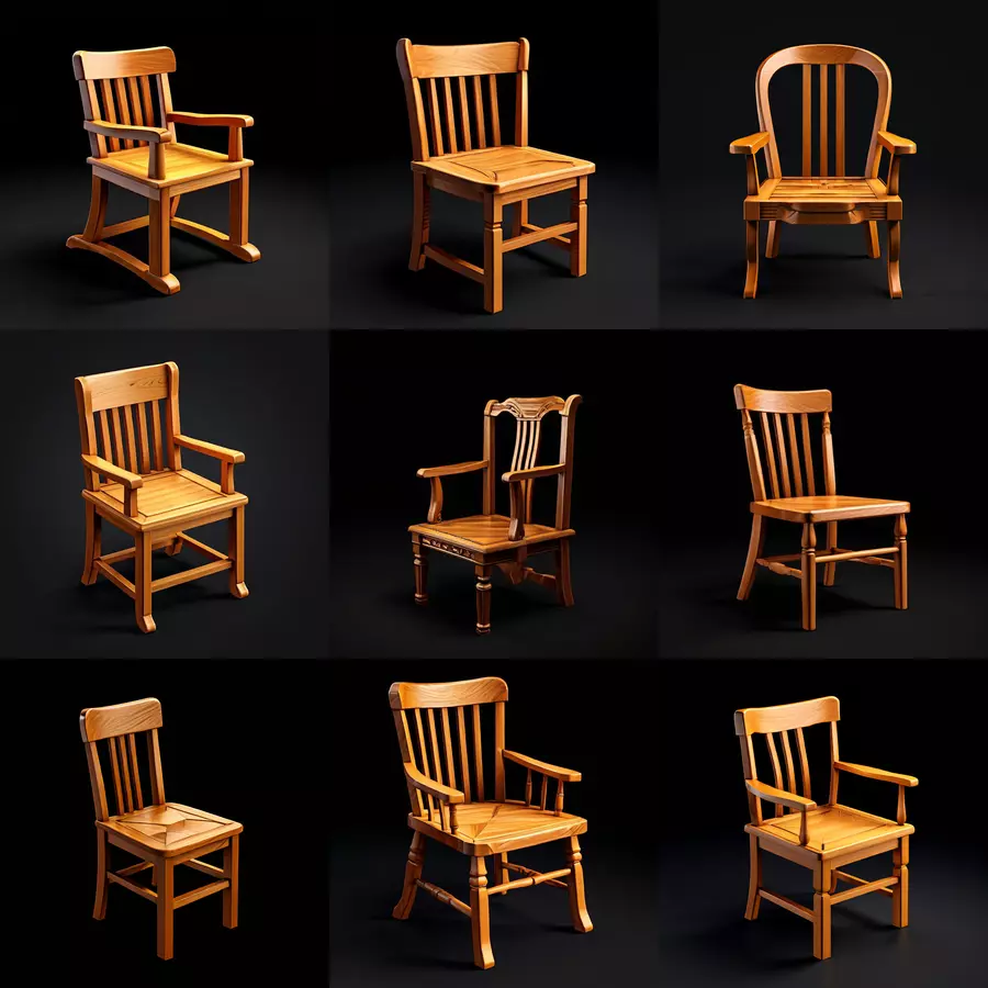 This asset pack includes 9 uniquely designed stylized wooden chairs, each with a distinct silhouette, backrest style, and construction detail. Whether you're creating a cozy tavern, a fantasy dining hall, a rural cottage, or a modern stylized interior, these chairs are perfect props to bring your scene to life.