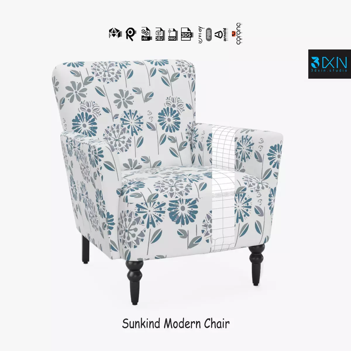 Sunkind Modern Chair is a high-quality, photo-realistic 3d model that will enhance your rendering projects' detail and realism. The model has a fully textured, detailed design that allows for close-up renders, and was modeled in 3ds Max 2018 and has a 3ds Max 2015 version, and rendered with V-Ray. Renders have no post-processing.