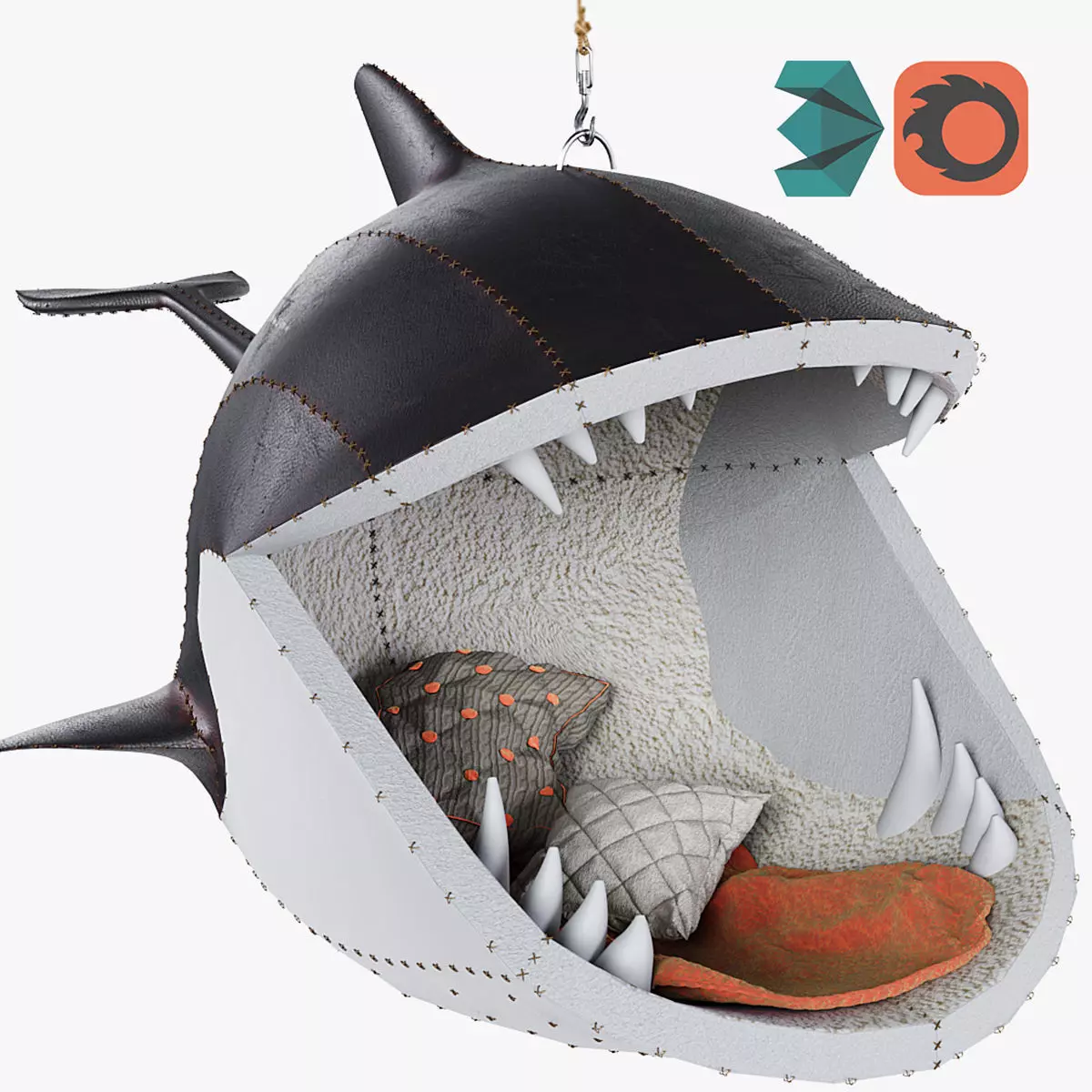 PORKY HEFER DESIGNS CRAFTED NESTS INSPIRED BY KILLER WHALES AND OTHER MARINE CREATURESSouth African designers Porky Hefer created hanging seatings inspired by marine creatures. The series supports local makers with an environmental message.Fiona Blackfish is a killer whale shaped hanging chair made with stitched black and white leather covering the external parts. The design is completed with tail and a full set of fins and flippers. A fluffy pink tongue is surrounded by leather cushion-teeth.The collection is hand made using the skills of local craftsmen starting from the weaving process that was carried out by Cape Town Society for the Blind.
