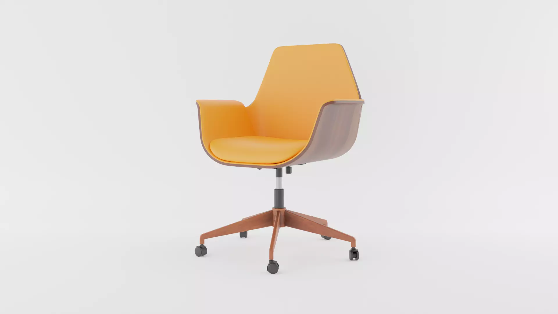 Channel mid-century modern vibes with this swivel chair. It features a molded plastic seat in vibrant orange, complemented by a wooden base with a walnut finish. The chair swivels smoothly and adds a retro flair to your home or office decor.