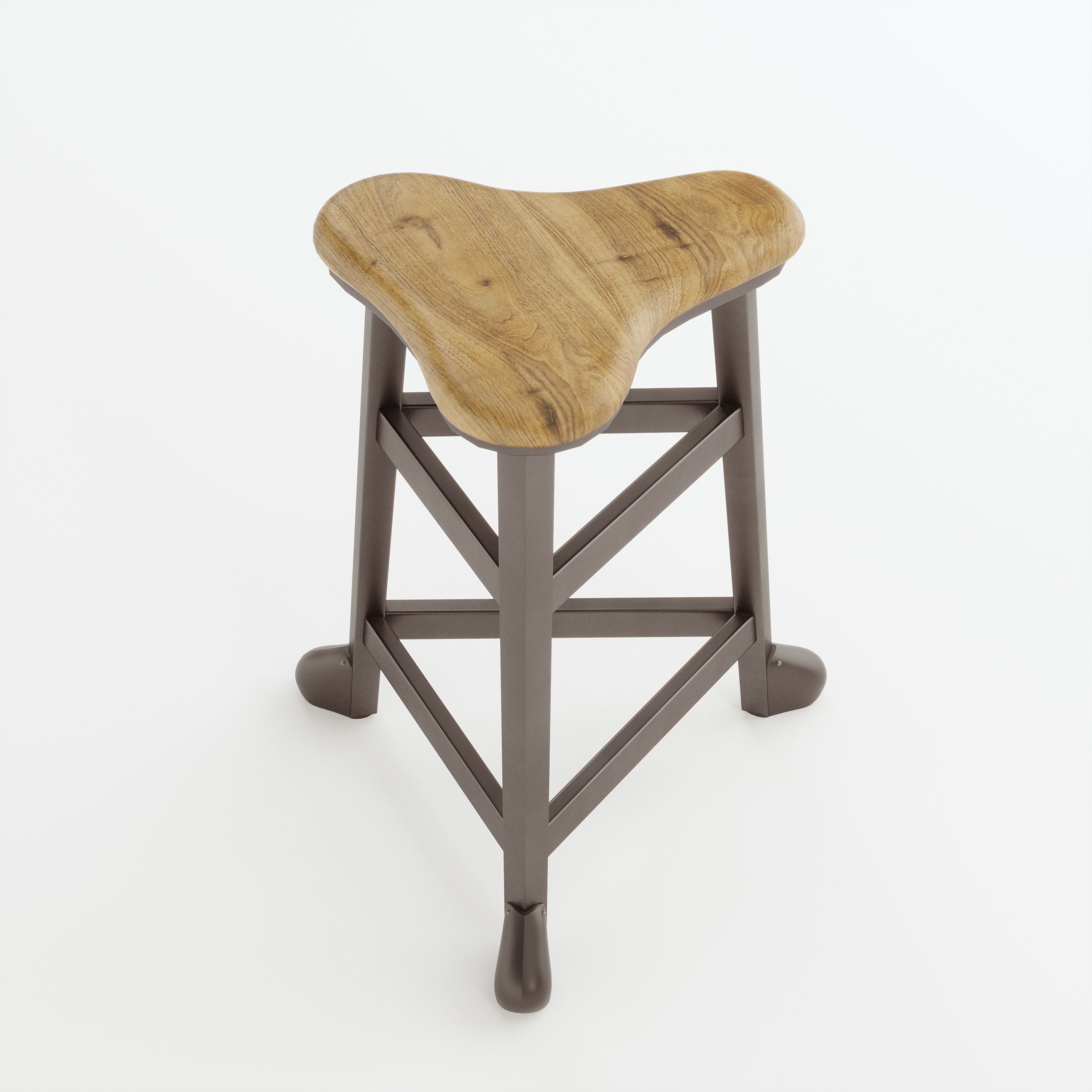 Three Legged Saddle Stool fully modelled and materials with correct scale and UVW mapping which can be added to scene and set up to render. Can be used in most scenes.