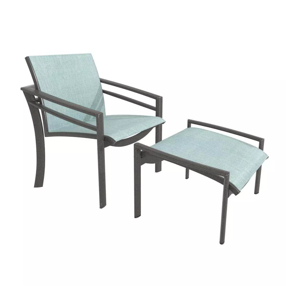 Inspired by mid-century modern design, the contemporary KOR Sling Lounge Chair features an edgy design with a curved back and arms and arched, angled legs. The outdoor lounge chair features Tropitone's durable sling fabric, creating a modern look and enhancing comfort. KOR Sling Lounge Chairs are sure to provide a fresh environment on your patio.Height (in.) 30.5Width (in.) 30Depth (in.) 29OttomanHeight (in.) 16.5Width (in.) 30Depth (in.) 2210688 polys