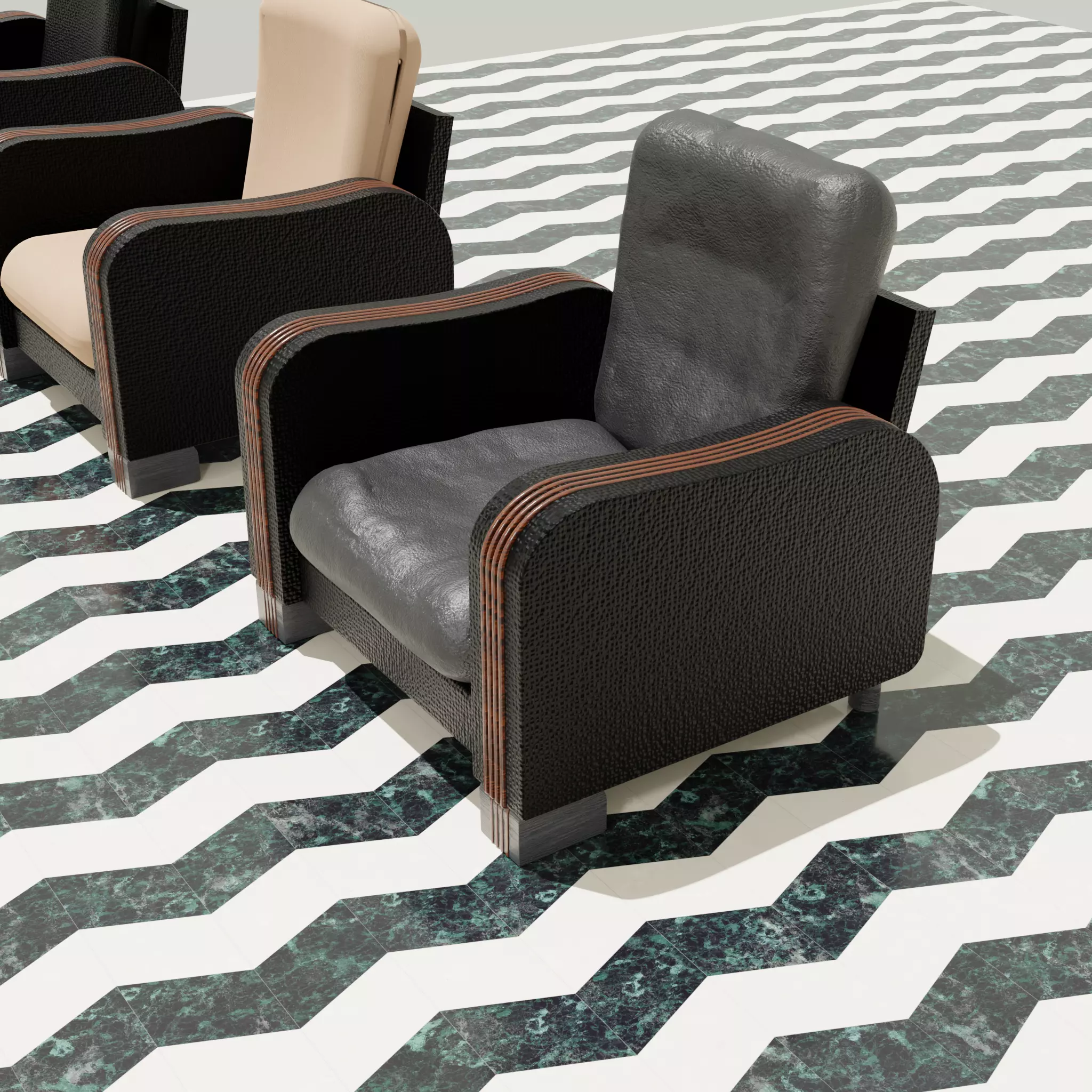The model has material settings that define how surfaces look (color, shine, transparency, etc.).