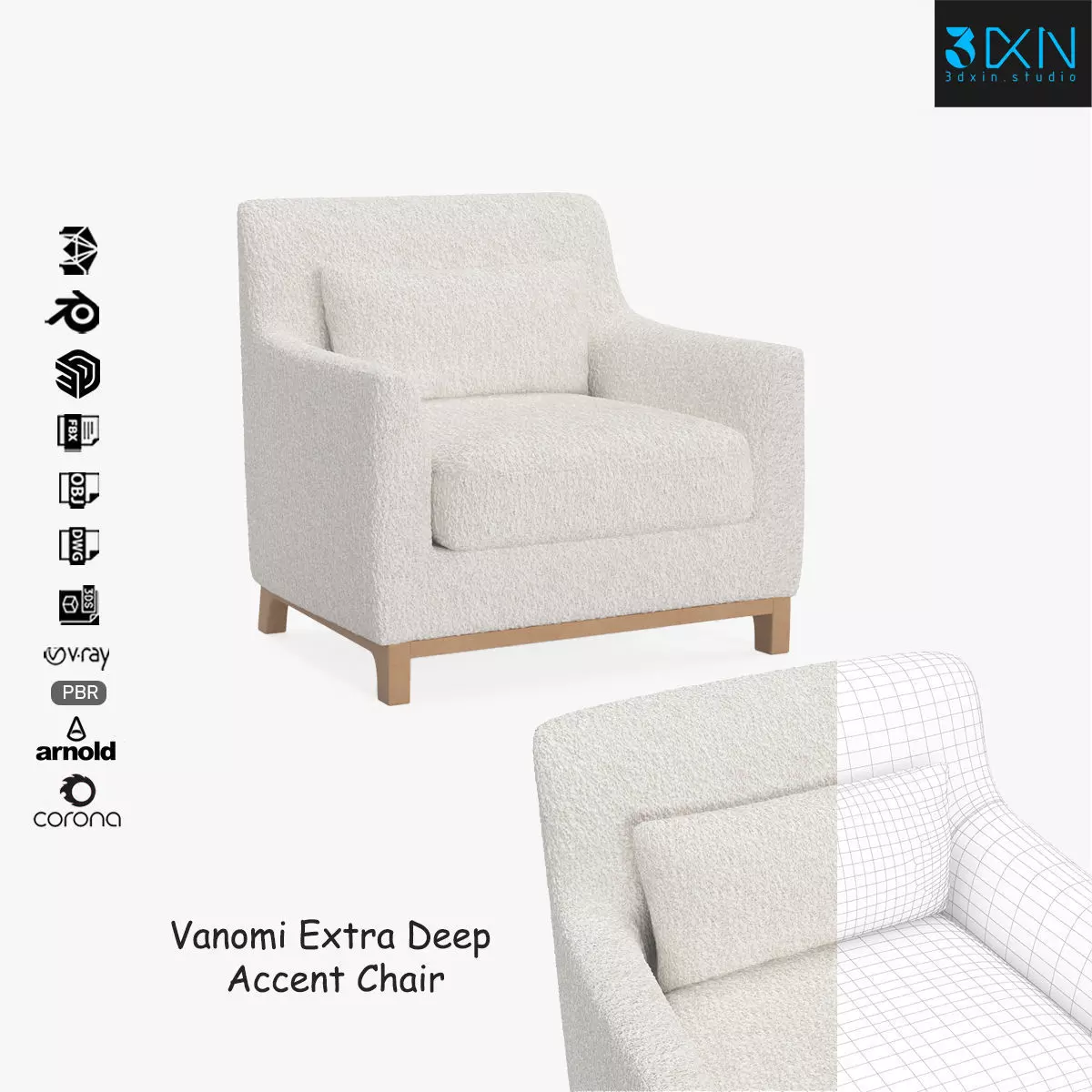 Vanomi Extra Deep Accent Chair is a high quality, photo realistic 3d model that will enhance detail and realism to any of your rendering projects. The model has a fully textured, detailed design that allows for close-up renders, and was modeled in 3ds Max 2018 also has 3ds Max 2015 version and rendered with V-Ray. Renders have no post-processing.