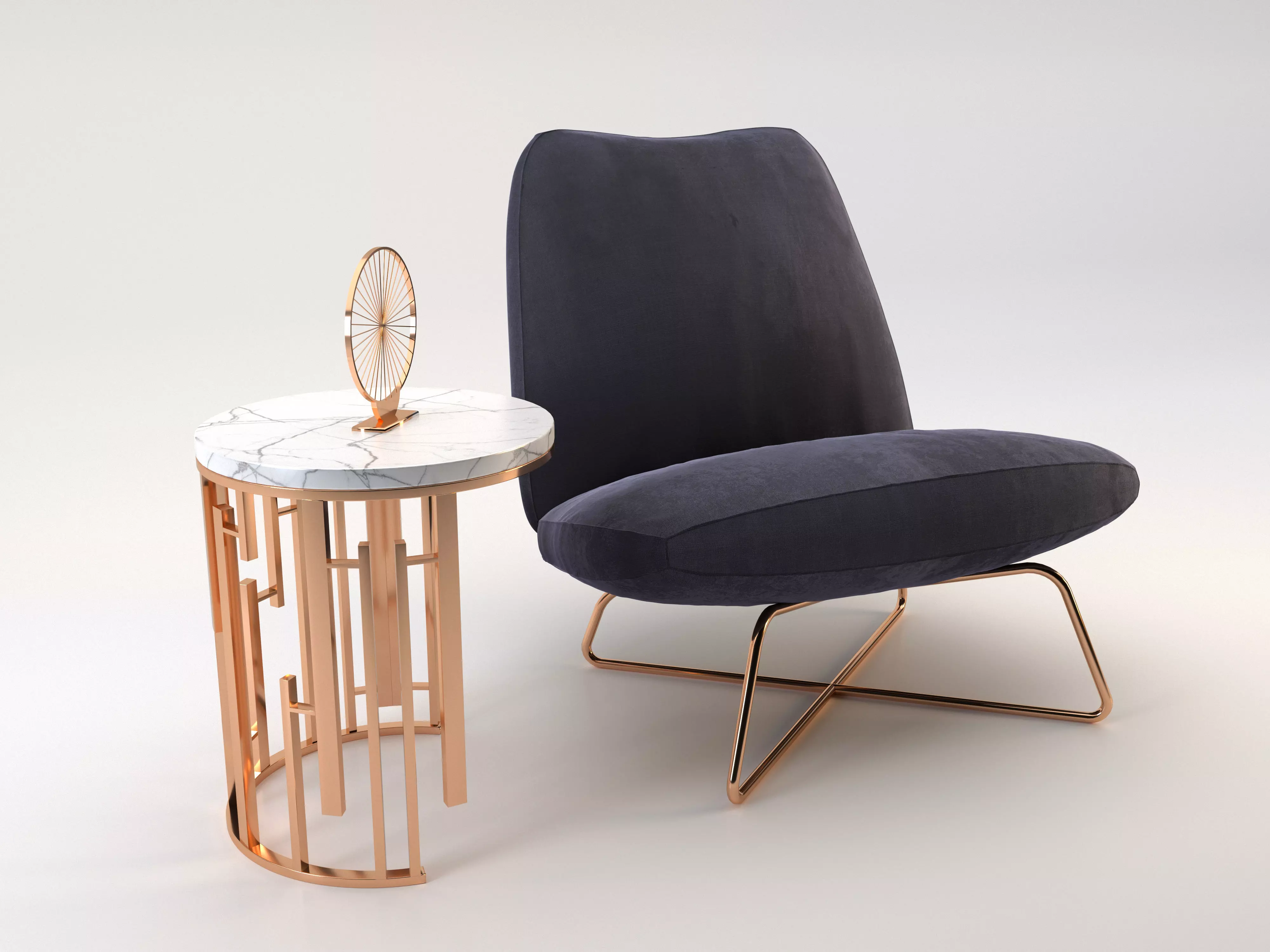 Velvet chair with side table 3D model