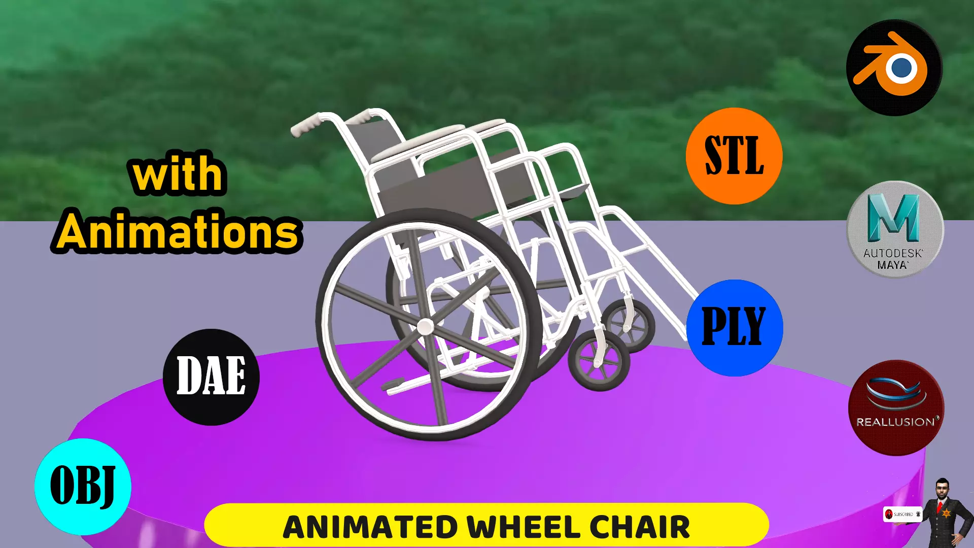 WHEEL CHAIR WITH ANIMATION Low-poly 3D model
