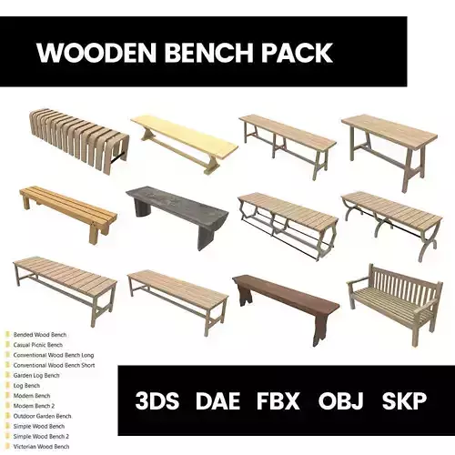 Wooden Bench Pack 3d Model
