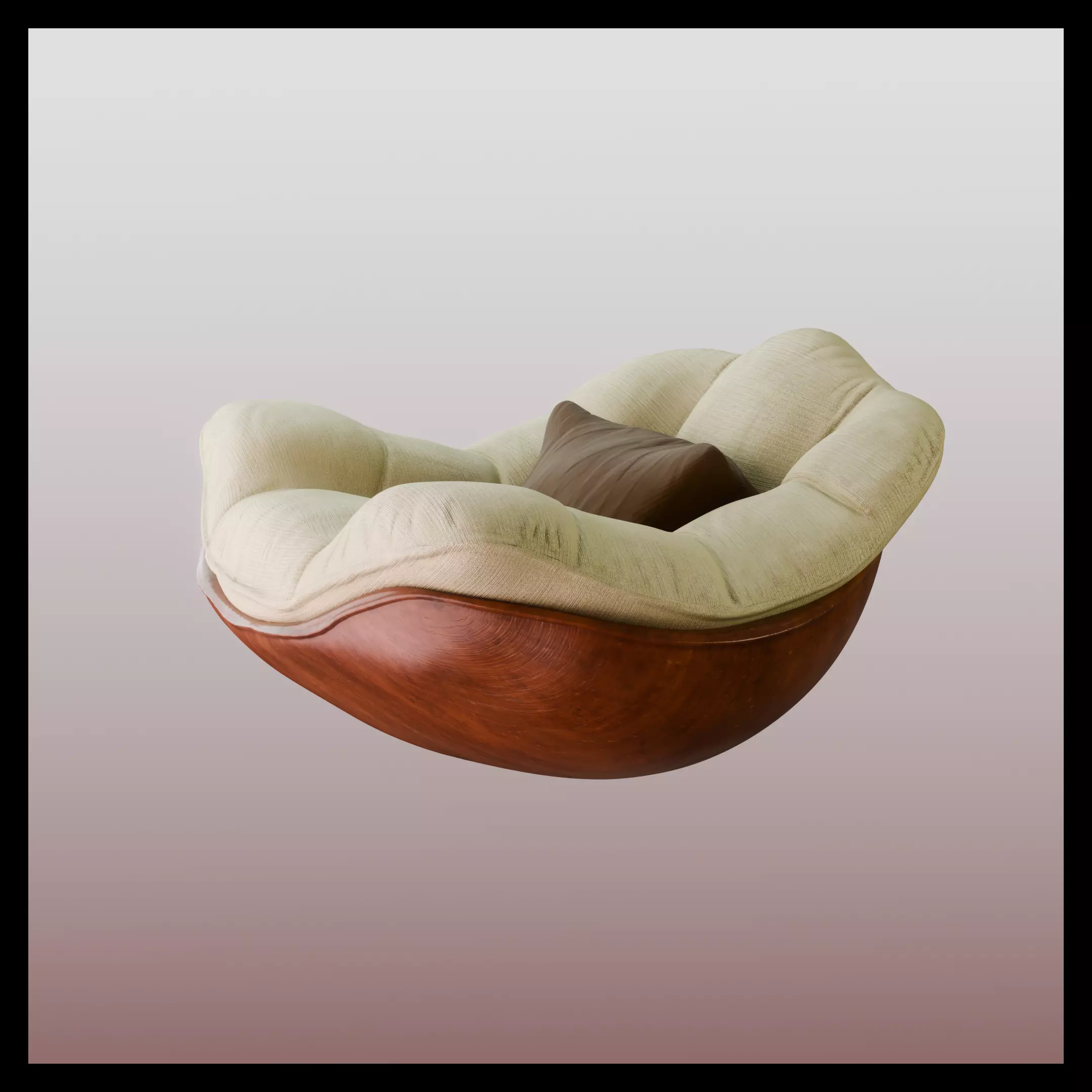 This 3D model showcases a modern curved-wood lounge chair designed with a smooth, sculpted wooden base and a plush cushioned seat. The combination of organic wood curvature and soft fabric upholstery creates a premium, inviting aesthetic perfect for interior renders, architectural visualization, virtual staging, and product showcases.The chair’s unique bowl-like silhouette makes it ideal for luxury living rooms, relaxation corners, boutique hotel concepts, or cozy reading nooks. Its neutral fabric palette ensures easy integration into a variety of interior styles—from contemporary to mid-century and Scandinavian design.The model is clean, optimized, and suitable for both close-up shots and full-room scenes.
